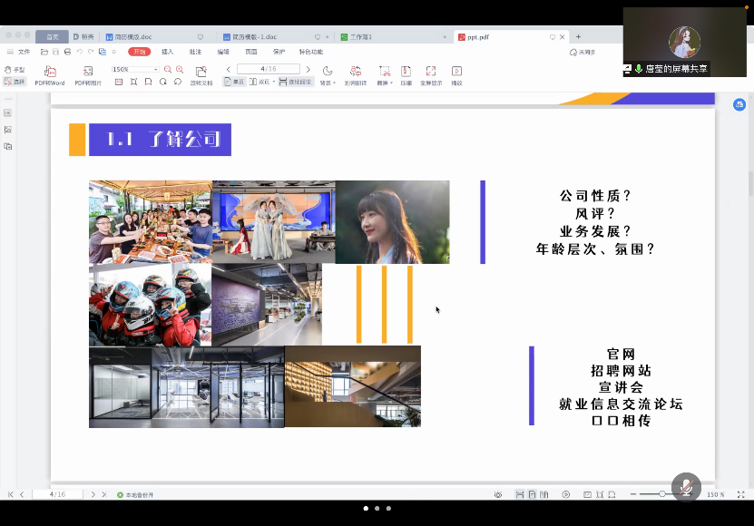 活动开始,唐老师向我们介绍了投递简历前的准备工作。第一步,在决定投递简历之前,我们需要了解企业性质、风评、业务发展、工作氛围等信息。而了解信息的渠道包括官网、招聘网站、宣讲会和交流论坛等等。第二步,需要充分了解岗位招聘需求,包括对学历专业语言的要求,公司的招聘人数、就业地点、薪资待遇以及招聘流程相关的问题。