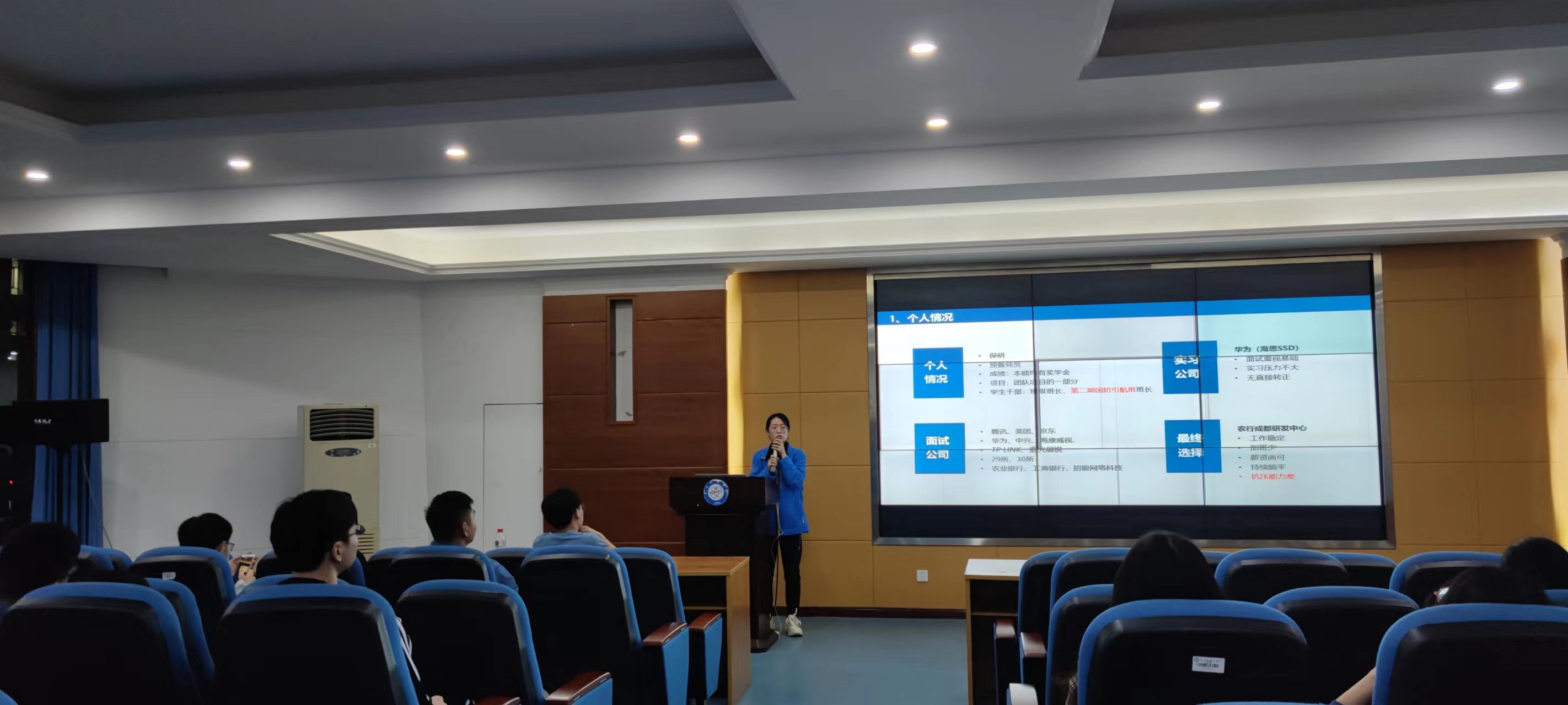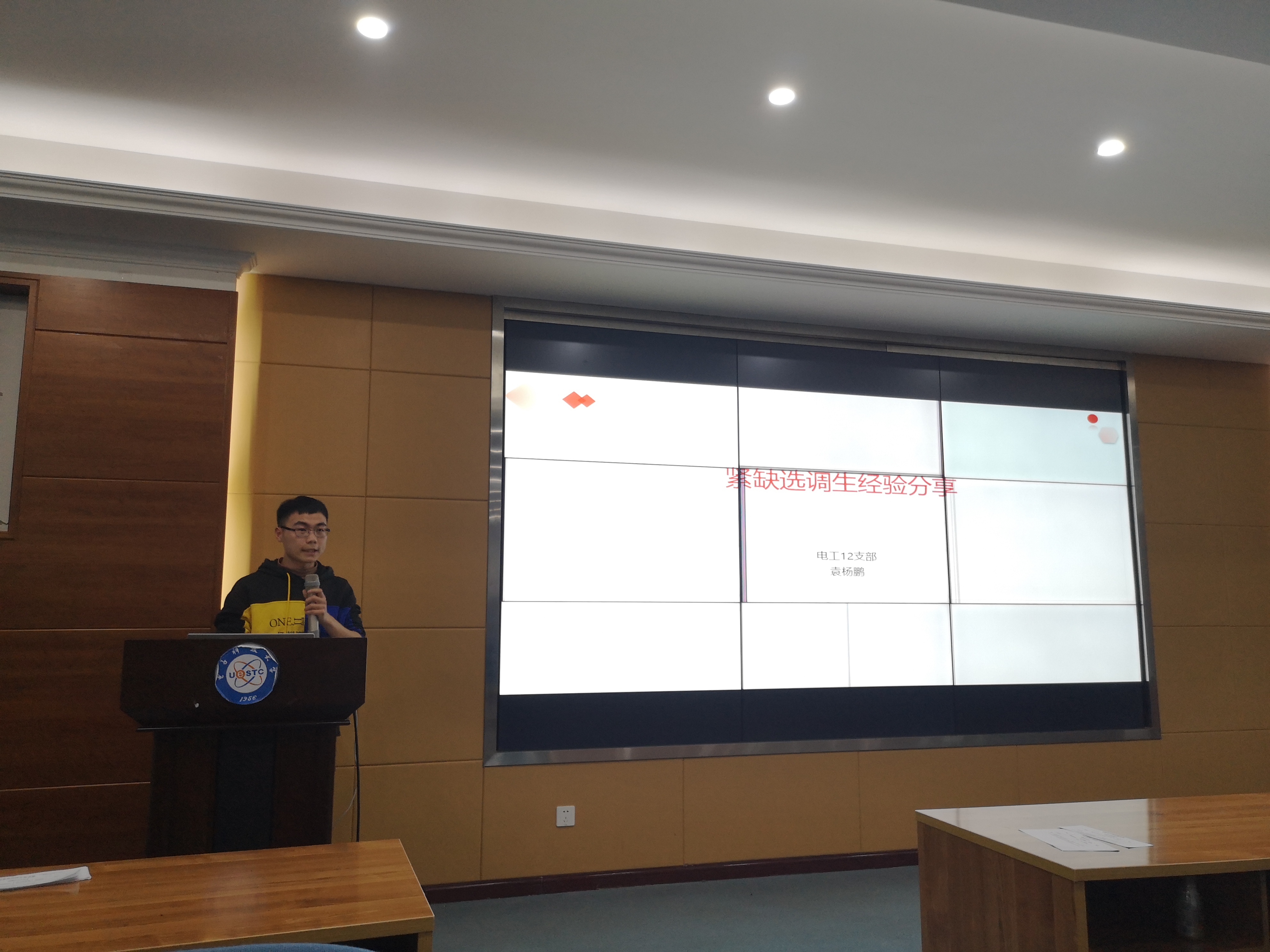 首先由电子工程系研究生第一党支部的赵莹辉同志开始,他即将成为TP-LINK的一名系统测试工程师。赵师兄分享了他在投递简历之前的准备工作,包括打好编程语法基础、夯实面试经典问题、网罗各单位就业信息等。赵师兄表示,一定要在简历中突出重点,并自信从容地回答面试官的每个问题,同时,投递简历也要重点考虑工作地点和目标岗位。