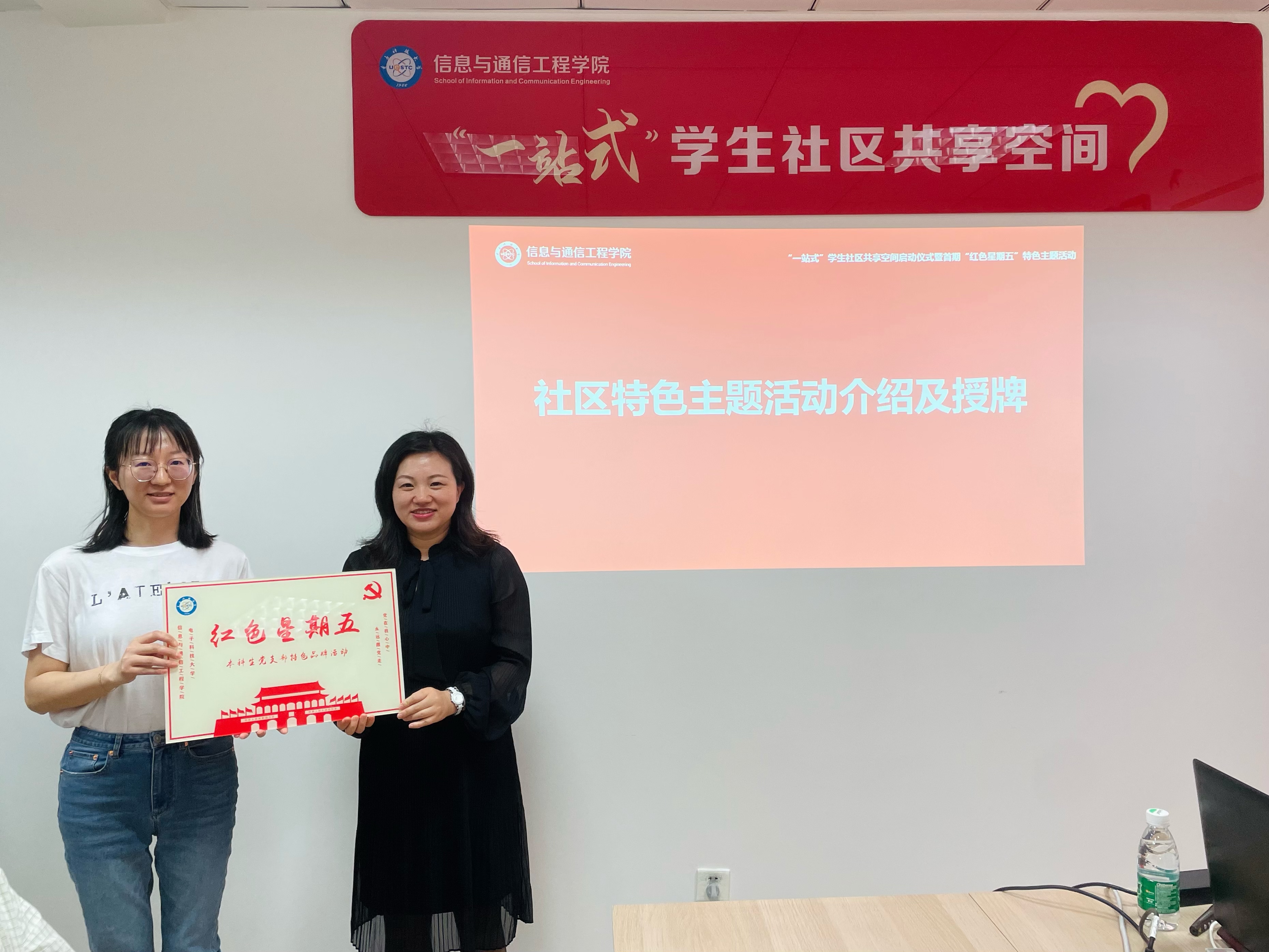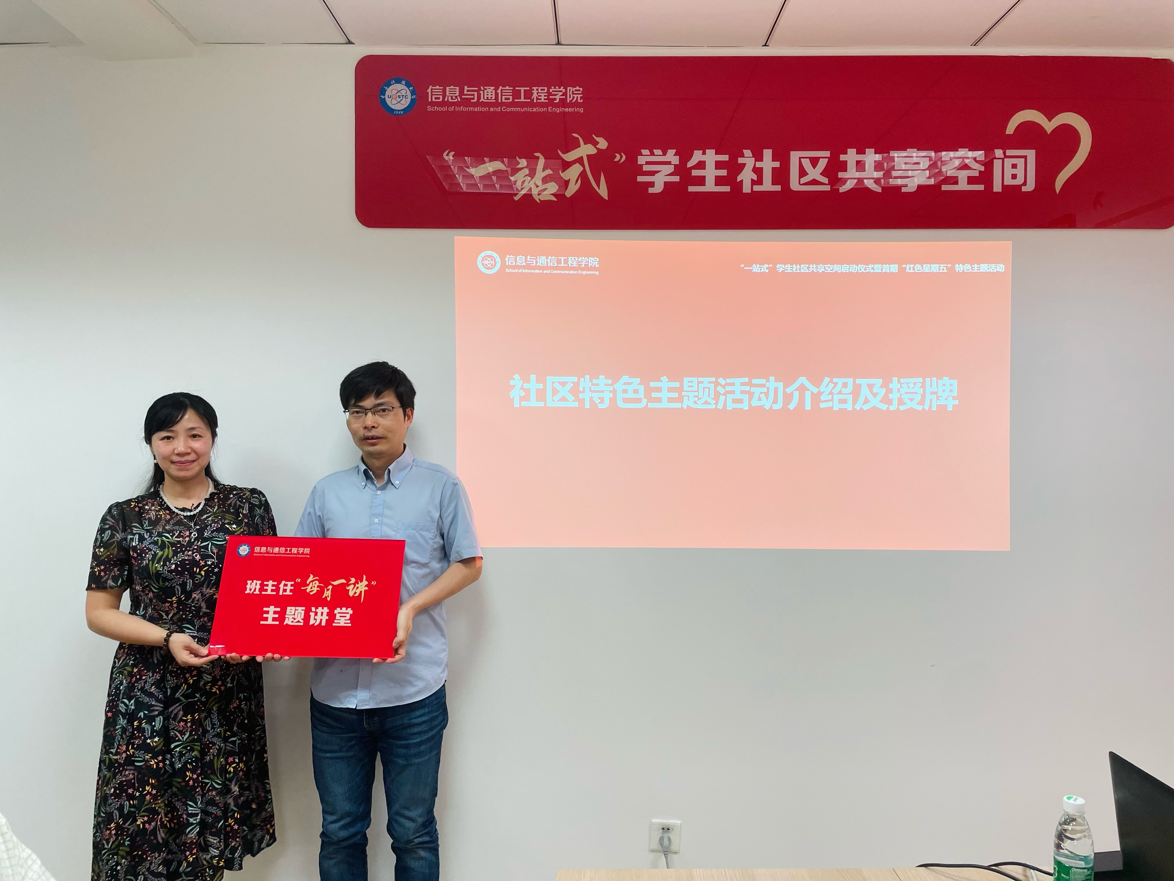 随后,杨晓玲副书记向大家介绍入驻社区的特色主题活动并举行授牌仪式。宿舍管理中心黄娟主任为班主任“每月一讲”活动授牌,新葡的京集团35222vip班主任代表崔国龙教授接受授牌;公司党委员工工作部李玉纯老师为“红色星期五”活动授牌,新葡的京集团35222vip江倩老师接受授牌。