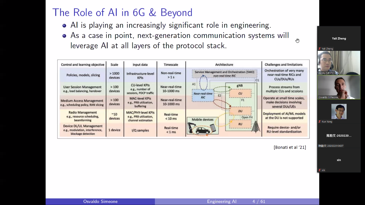 5月5日下午17点,由人力资源部教师发展中心主办、新葡的京集团35222vip承办的“名师讲堂”邀请到IEEE Fellow、伦敦国王公司教授Osvaldo Simeone,作主题为“Engineering Reliable and Efficient AI with Applications to Communications”的线上精彩报告。本次学术交流活动由新葡的京集团35222vip胡杰研究员主持。