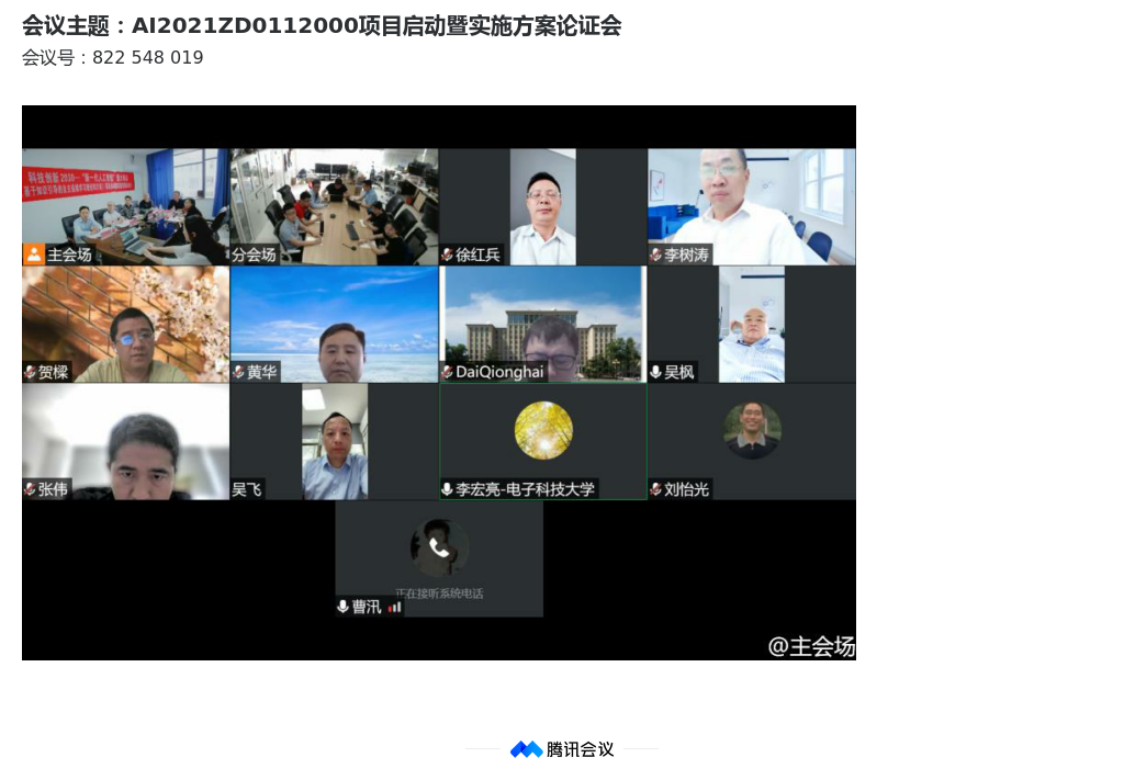 5月27日,科技创新2030—“新一代人工智能”重大项目2022年立项项目“基于知识引导的自主连续学习理论和方法”项目启动暨实施方案论证会在线召开。项目牵头单位新葡的京集团35222vip副董事长徐红兵教授、四川省科技厅高新处谢武林副处长,项目顾问专家组清华大学戴琼海院士、四川大学刘怡光教授,科技部项目专家组组长华东师范大学贺樑教授、中国科技大学副董事长吴枫教授、湖南大学副董事长李树涛教授、浙江大学吴飞教授、北京师范大学黄华教授、南京大学曹汛教授,项目负责人新葡的京集团35222vip李宏亮教授、课题负责人山东大学张伟教授、项目组骨干成员参加了会议。新葡的京集团35222vip科研院杨海光经理主持本次项目启动暨实施方案论证会。