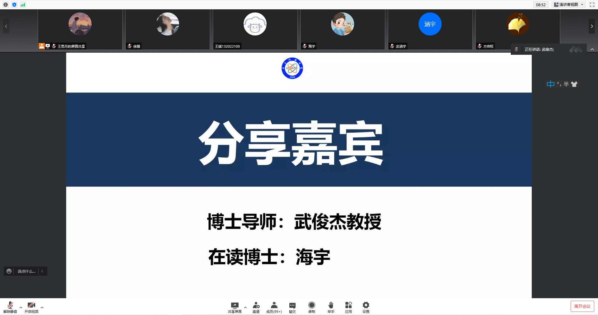 武俊杰教授简要介绍了公司的基本情况,并从自身学习与科研工作经历出发,指出兴趣是最好的老师。他以自己的员工为例,讲述了兴趣对于人的激励作用,并表示希望大家都可以热爱自己的专业,投入相关内容的学习。在提及本科、硕士与博士的区别时,武教授巧妙地以“抓兔子”作比,将本科、硕士和博士阶段的学习与“从草地上捡回抓好的兔子”、“在草地上用已知的方式抓兔子”和“在草原上想办法抓兔子”相对应,生动阐释不同阶段的能力要求。最后,武俊杰强调大学阶段很宝贵,同学们应当付出更多努力,利用平台所赋予的资源,明晰自己未来的方向,获得更好的发展。