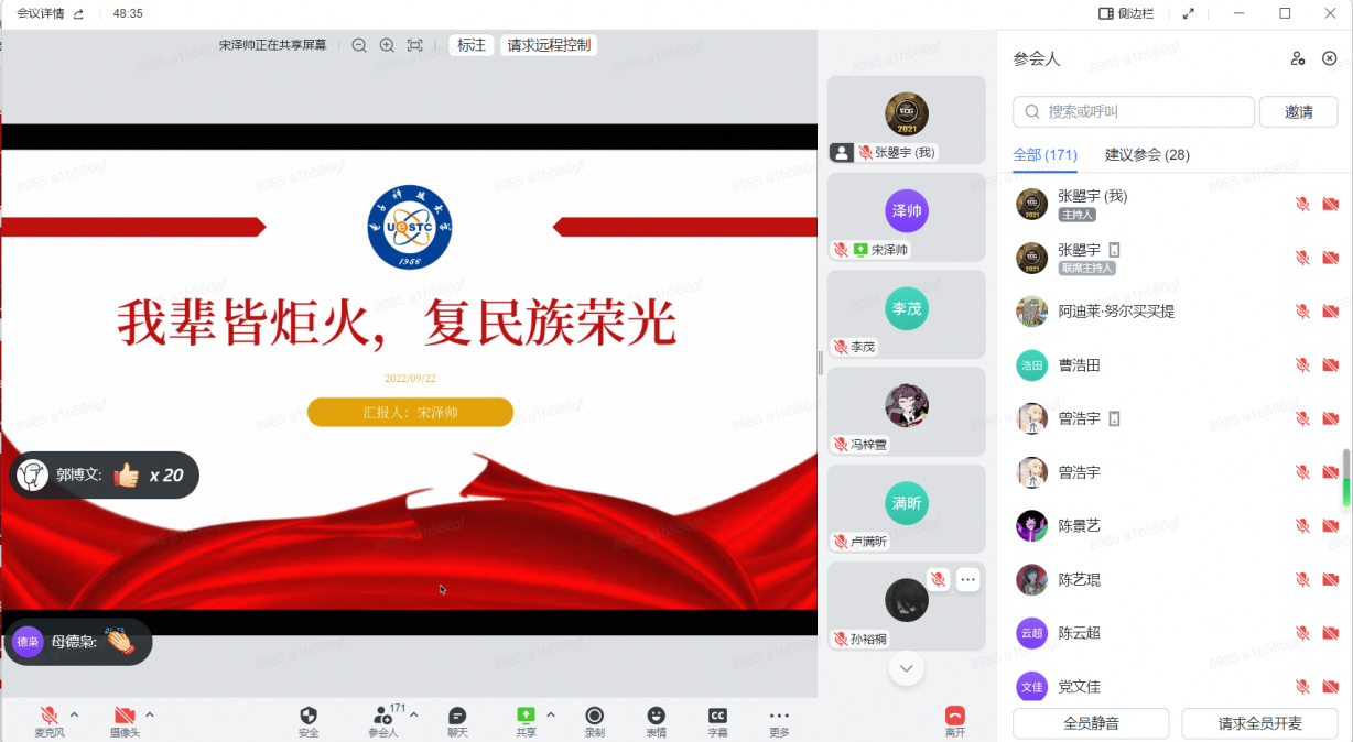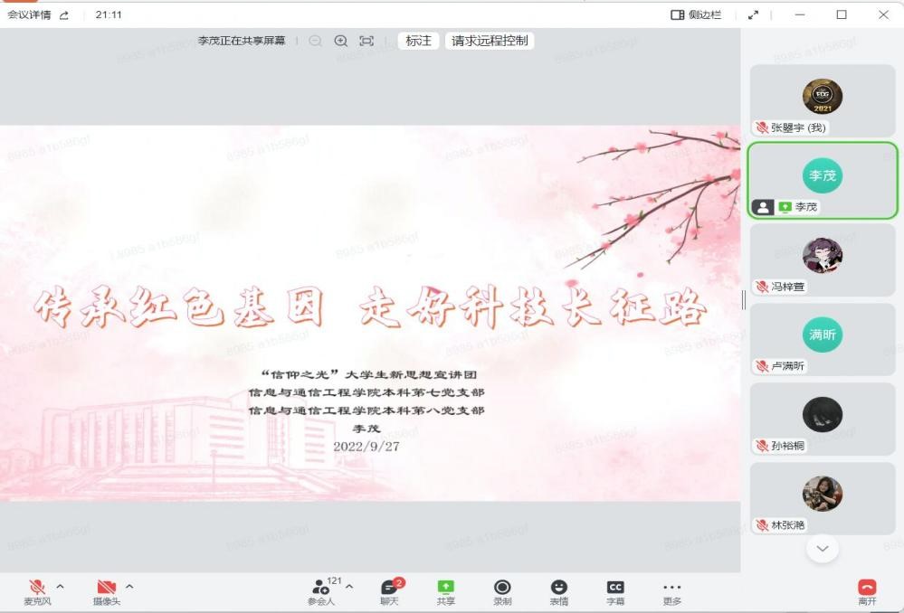 为深入推进党史学习教育,迎接党的二十大胜利召开。9月27日,新葡的京集团35222vip本科生第七、第八党支部联合“5月的向日葵”辅导员工作室下属“信仰之光”老员工新思想宣讲团面向公司2022级新生带来微党课宣讲,该活动也是新生入党启蒙教育系列活动之一。宣讲员从成电建校史、公司发展史等方面进行宣讲,增强同学们爱党爱国爱校之情,传承成电精神,迎接公司66周年校庆。