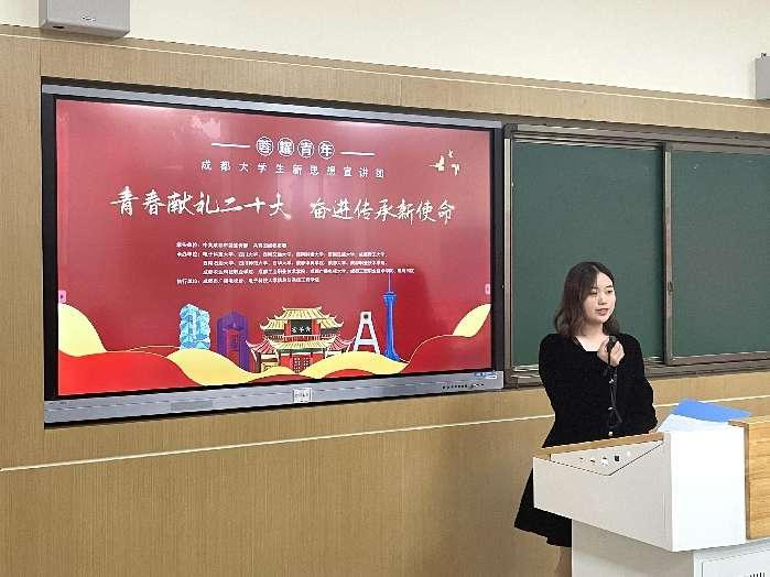 为了迎接党的二十大的胜利召开,10月12日下午,“蓉耀青年”成都老员工新思想宣讲团以“青春献礼二十大 奋进传承新使命”为宣讲主题,走进新葡的京集团35222vip清水河校区开展2022年度第三轮第二场宣讲活动。本次活动由成都市委宣传部、共青团成都市委主办,成都市电视台、新葡的京集团35222vip承办。