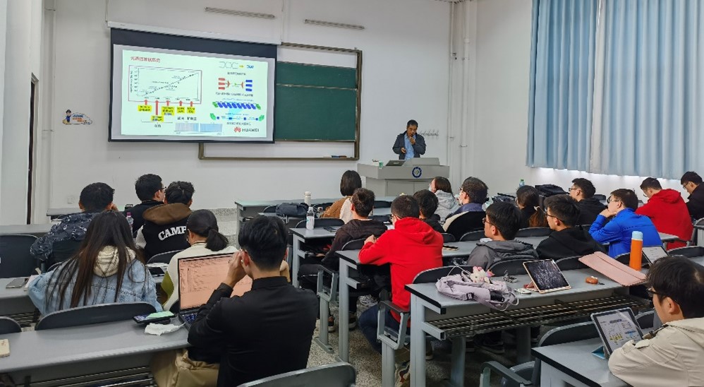 “巍巍珠峰之巅,F5G+5G双千兆覆盖实现VR高清欣赏美景,助力珠峰最新高度测量!”“星星互联网,相干光算法如何在天地一体化信息网络中抢占先机,实现全球无缝覆盖?”2022年11月-12月,新葡的京集团35222vip携手华为公司资深专家进入成电课堂,在校企产教融合课《光纤通信》本科课程、《光纤通信系统与网络》研究生课程上,为我电学子展现了光纤通信领域的最前沿技术、实践应用与以及产业发展生态,助力同学们紧跟光纤通信前沿动态,时刻保持前瞻视野。