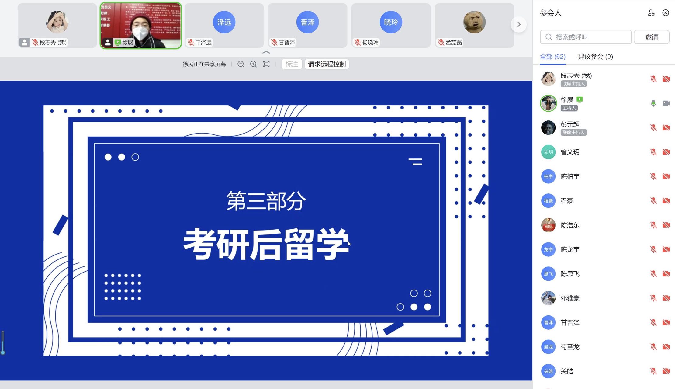 最后,考研导生彭元超进行考研复试经验分享,从成绩构成、复试流程和前期准备各方面进行了详细的介绍。