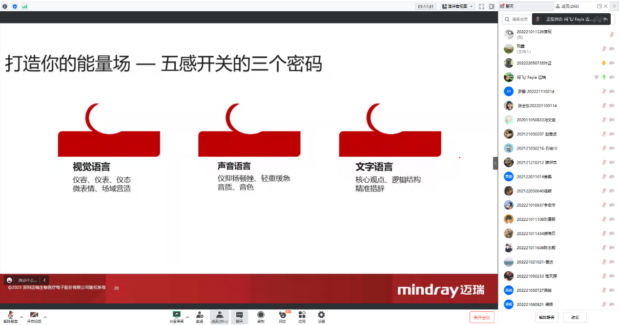 随后,闫老师提到为了培养自己的仪态,我们需要打造自己的能量场。首先是加强对自己的认可和欣赏;其次是学会了解他人,觉知能力强;最后一点则是拥有稳固的志向,即心气。