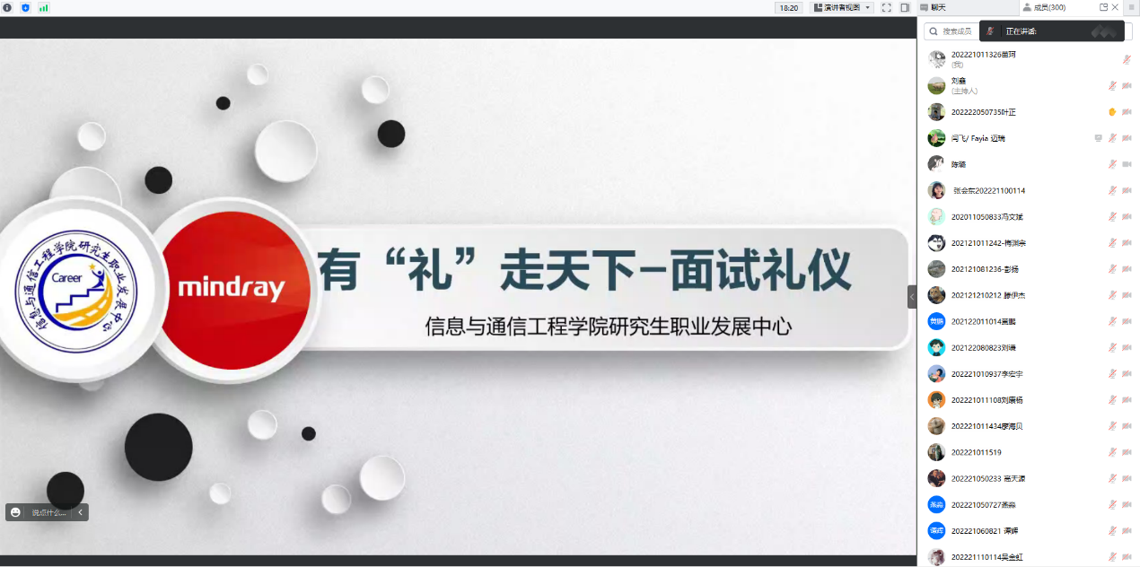 2023年3月24日,新葡的京集团35222vip研究生职业发展中心在线上成功举办“有‘礼’走天下-面试礼仪”的就业培训活动。此次活动邀请到了拥有近20年人才培养与发展工作经验的迈瑞金牌专职讲师闫飞老师,吸引300名员工参与。闫老师从面试礼仪的内涵开始引入,分析了仪容仪表仪态,并讲授了如何修炼自己的仪态和打造个人的第一印象。