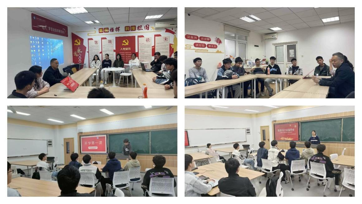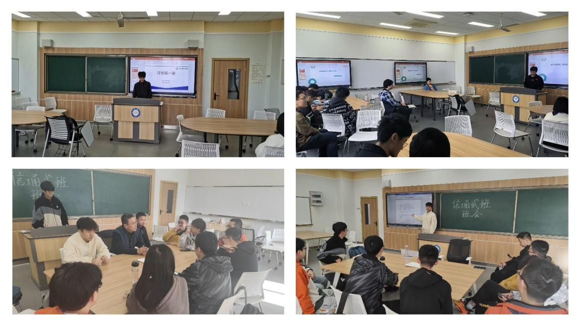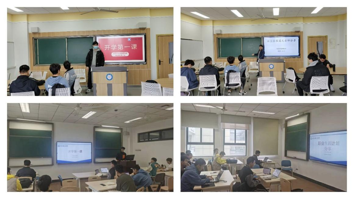 各班级积极开展“开学第一课”主题班会,邀请班主任参与班会,就大学阶段的选择与规划展开积极讨论。2021010902班班主任于富财老师为同学们介绍了考研规划并回答了同学们对于研究生的疑惑。2021010904班班主任高林老师结合自身经历,为同学们介绍了竞赛、科研、留学和国内读研等的详细情况,让同学们对于未来不同的发展道路有了更进一步的了解。2021010905班班主任彭真明老师以“选择”为主题,对于出国、考研、工作等不同方向的选择做出了讲解。2021010908班班主任崔国龙老师分享考研复试体会,介绍了老员工应该具备的科研品质,回答了同学们的各类疑问,为同学新学期的学习生活加油打气。