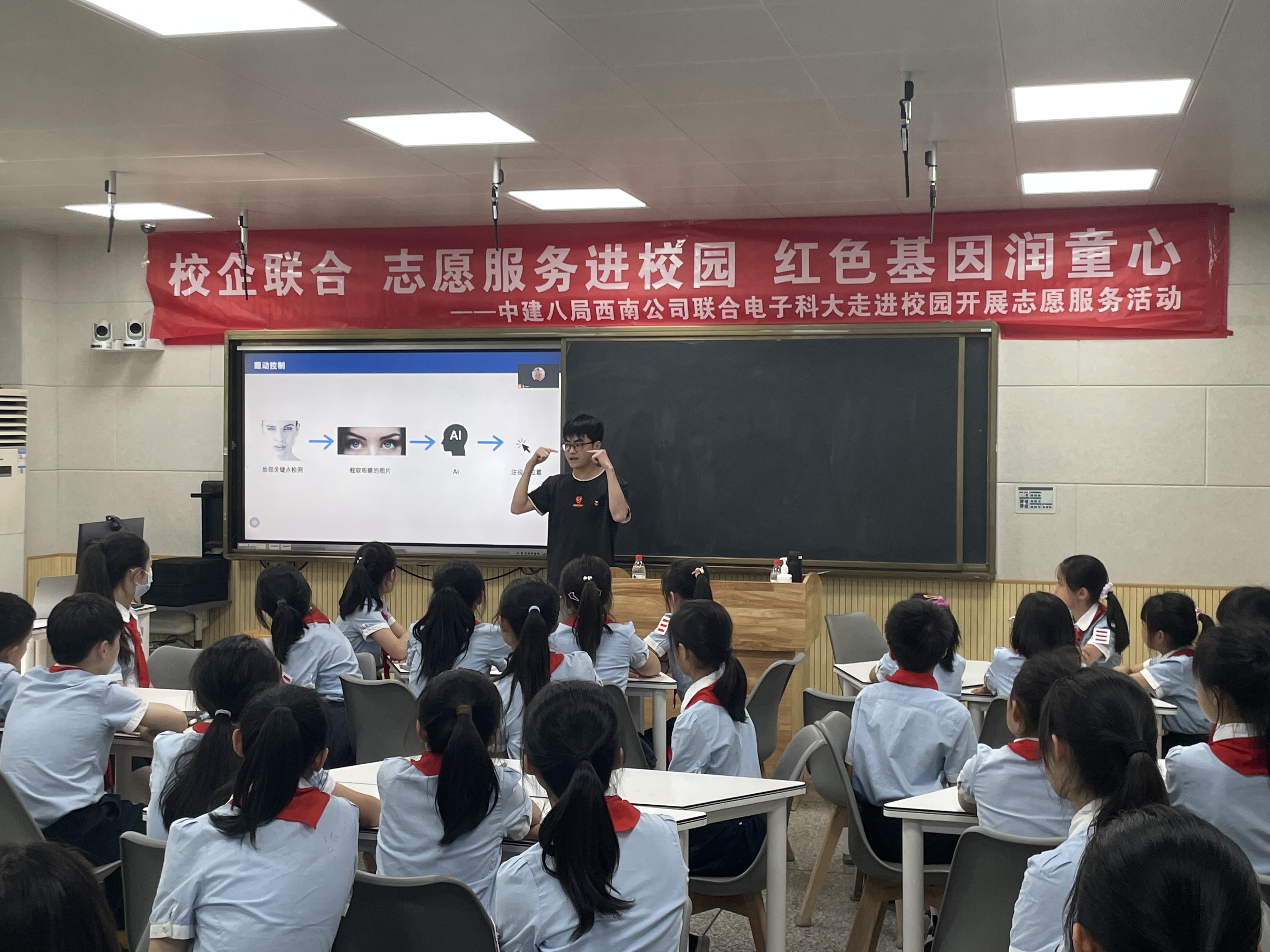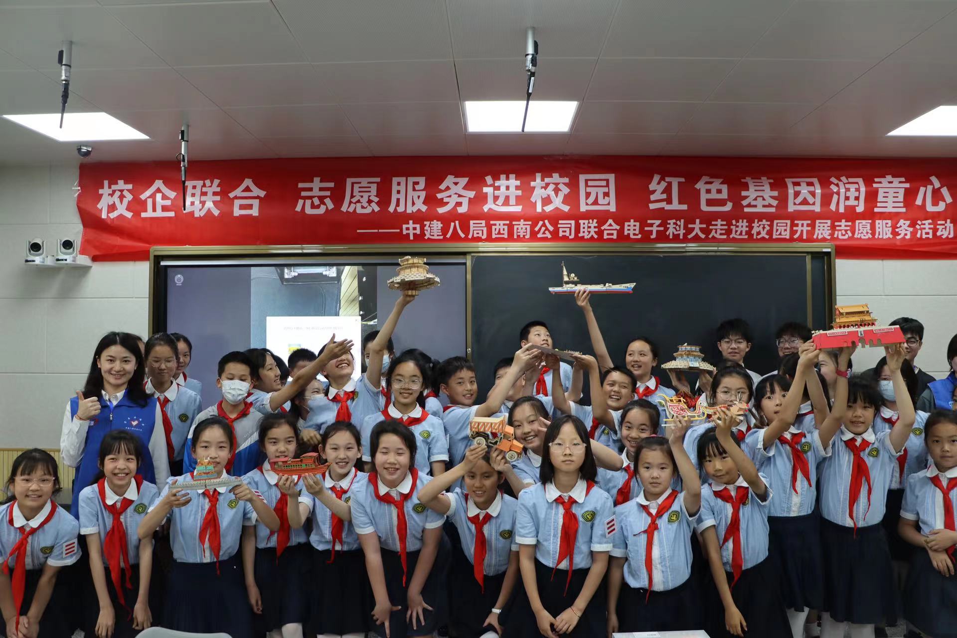 为深入学习宣传贯彻党的二十大会议精神,大力弘扬五四精神与志愿服务精神。在五四青年节来临之际,新葡的京集团35222vip的青年志愿者们联合中建八局西南公司共同走进成都市高新区益州小学开展“校企联合,志愿服务进校园,红色基因润童心”主题志愿活动。活动分为三个环节,80余人参与。