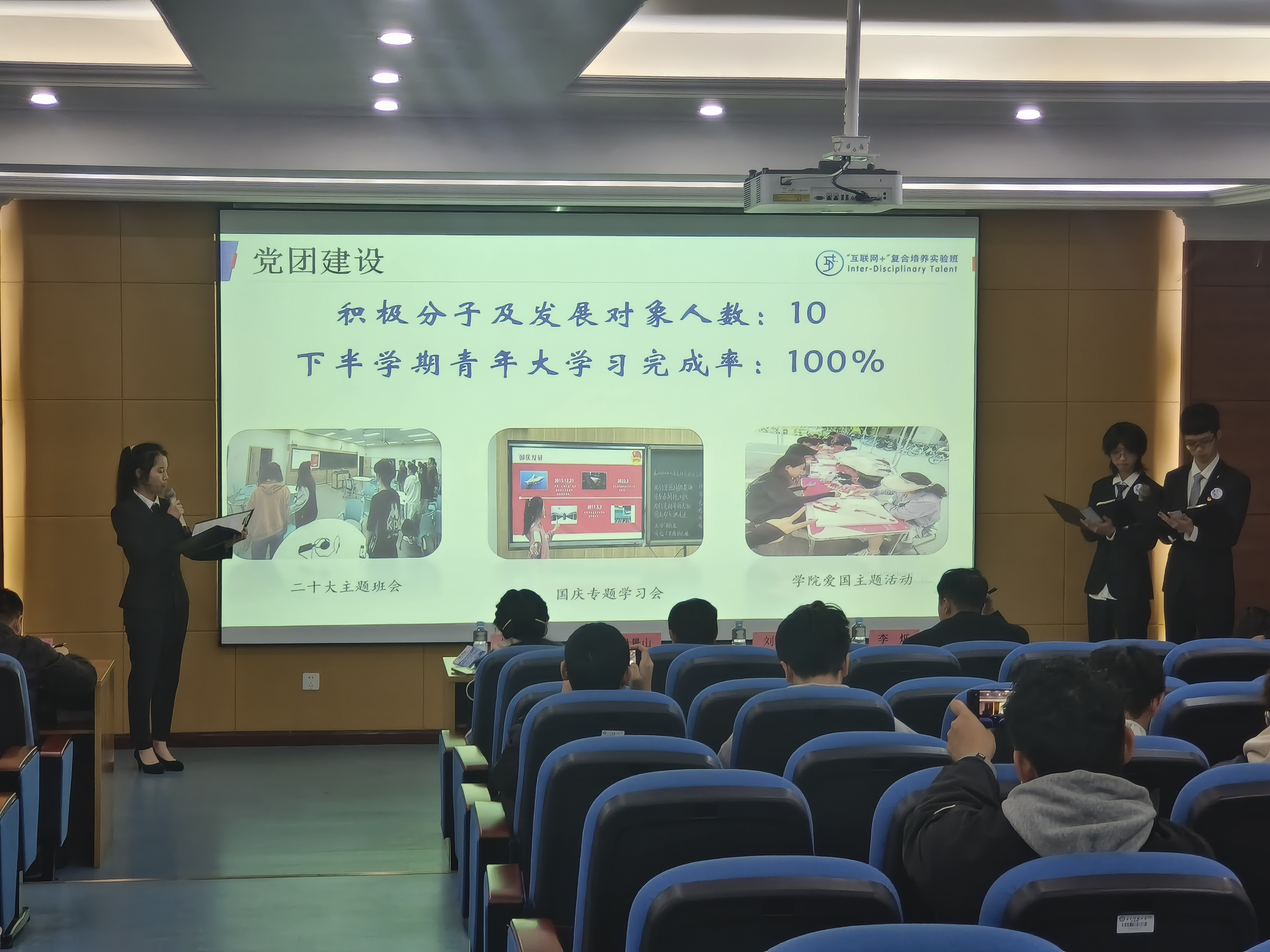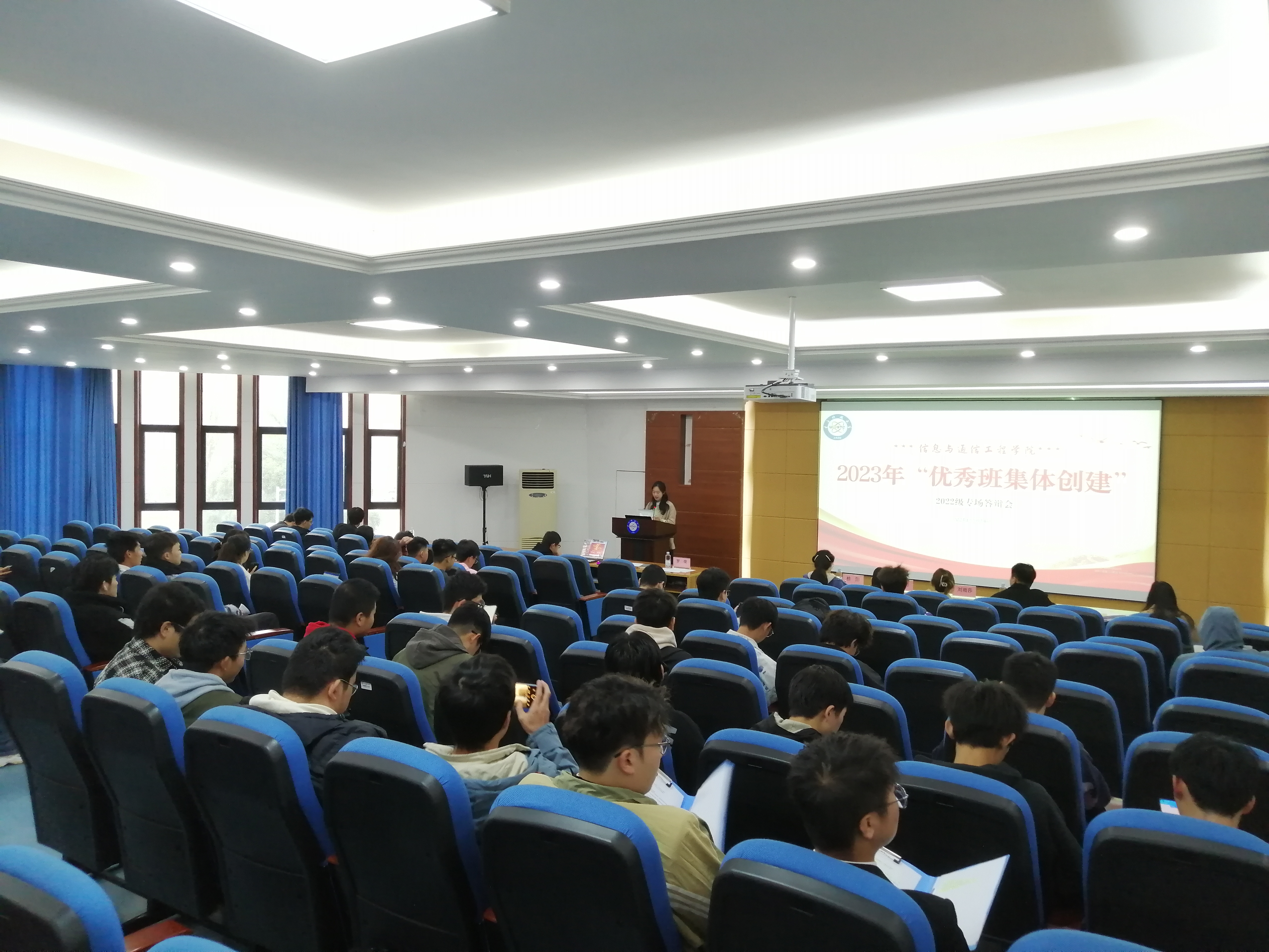 2022级共17个班级参与了本年度优班创建与答辩,参与率100%。答辩包括4分钟的班级代表陈述、2分钟的回答评委提问两个环节。各班级结合答辩PPT、特色总结材料,讲述在思想建设、学风建设、党团建设、科技文化、寝室建设、体育公益等方面取得的成果。各班级的精彩陈述充分展示了优班创建的良好成效,也让同学们感受到了班级同学携手前行,锐意进取的精神力量。