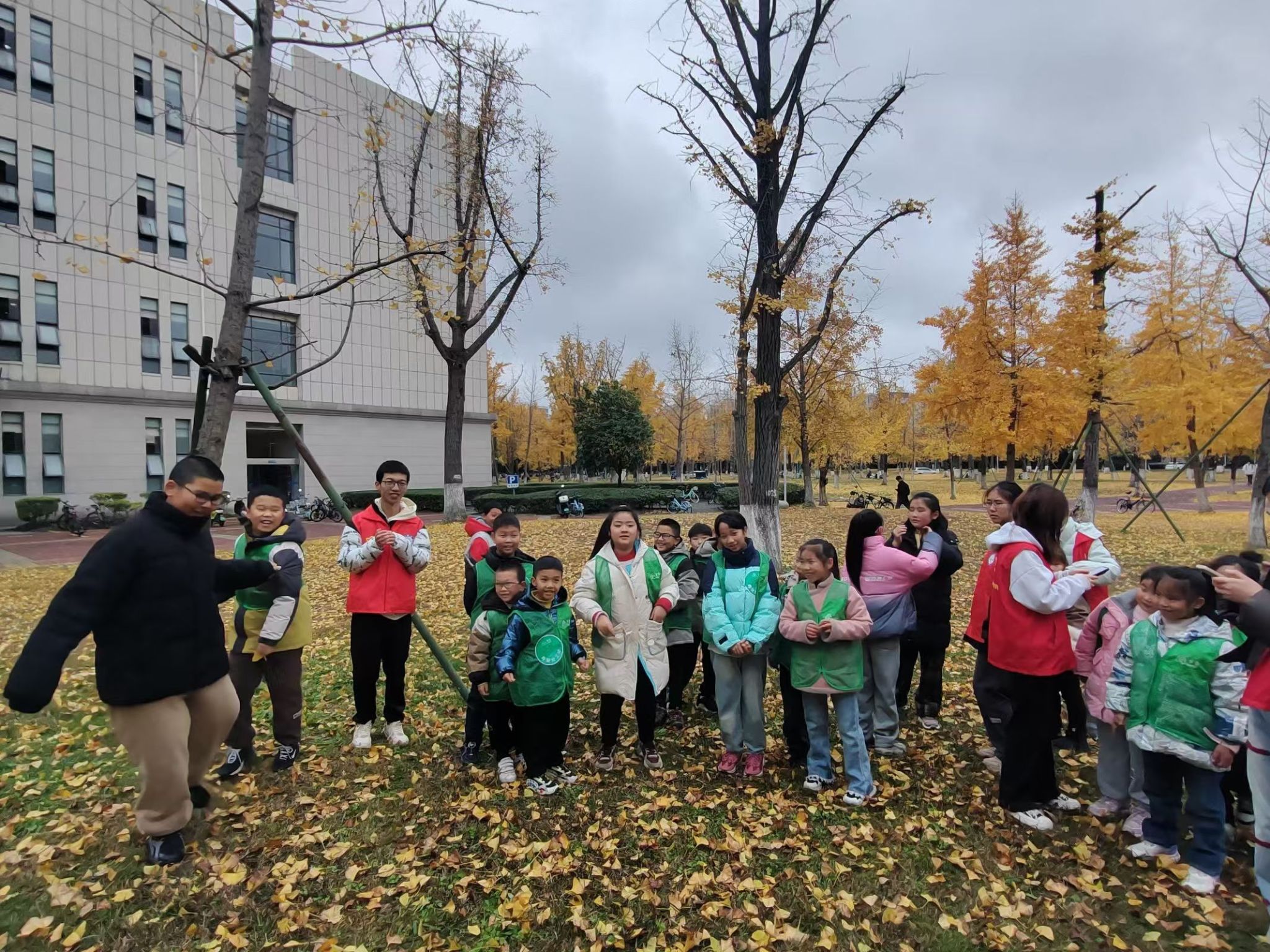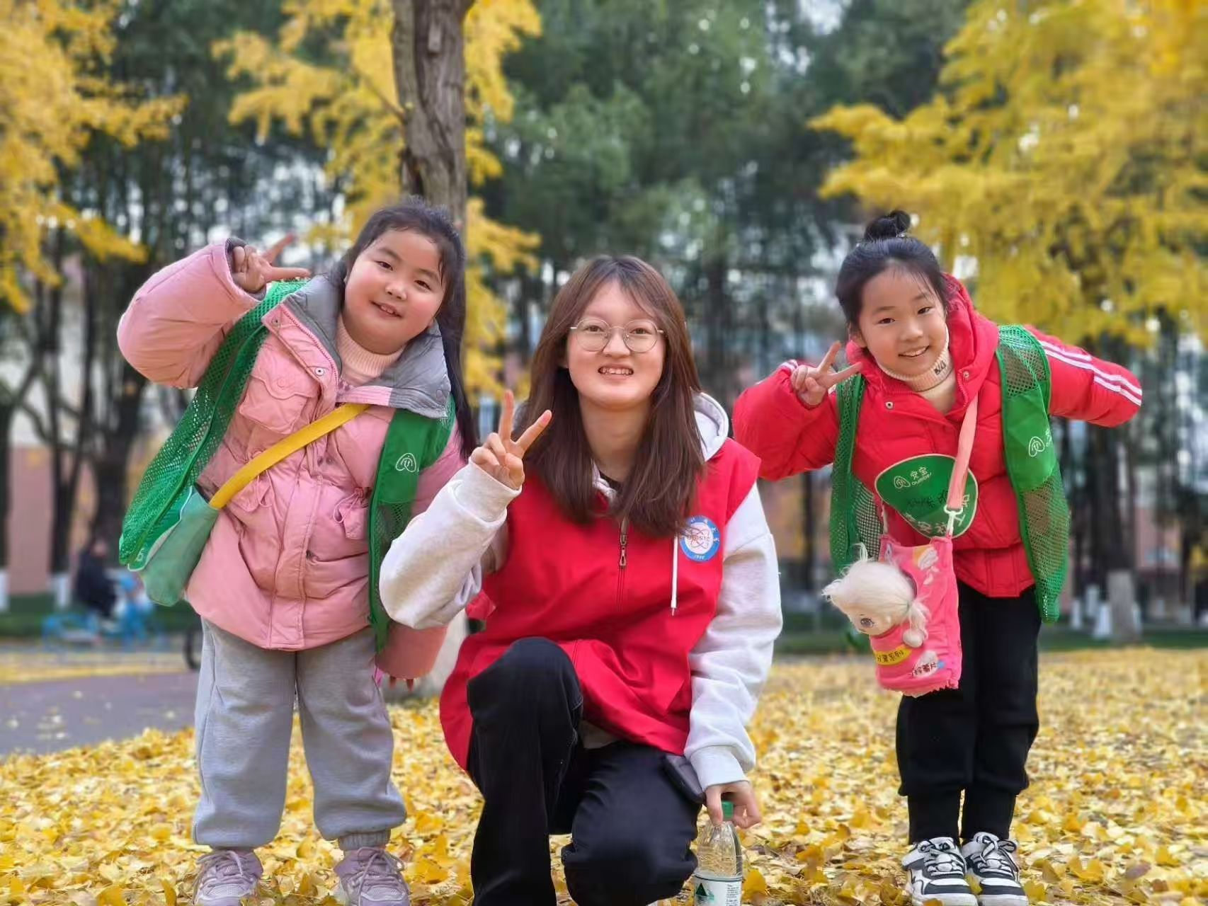 随后,志愿者带领孩子们参观了公司校园,走过宽敞的教学楼、现代化的实验室和绿树成荫的校园角落。正值银杏叶落的季节,校园内满是金黄的秋意,也吸引了很多校外游客。孩子们对大学的环境和设施充满了好奇,一边听着志愿者们的讲解,一边兴奋地拾起地上落下的银杏叶,认真感受着这片校园的历史与氛围。
