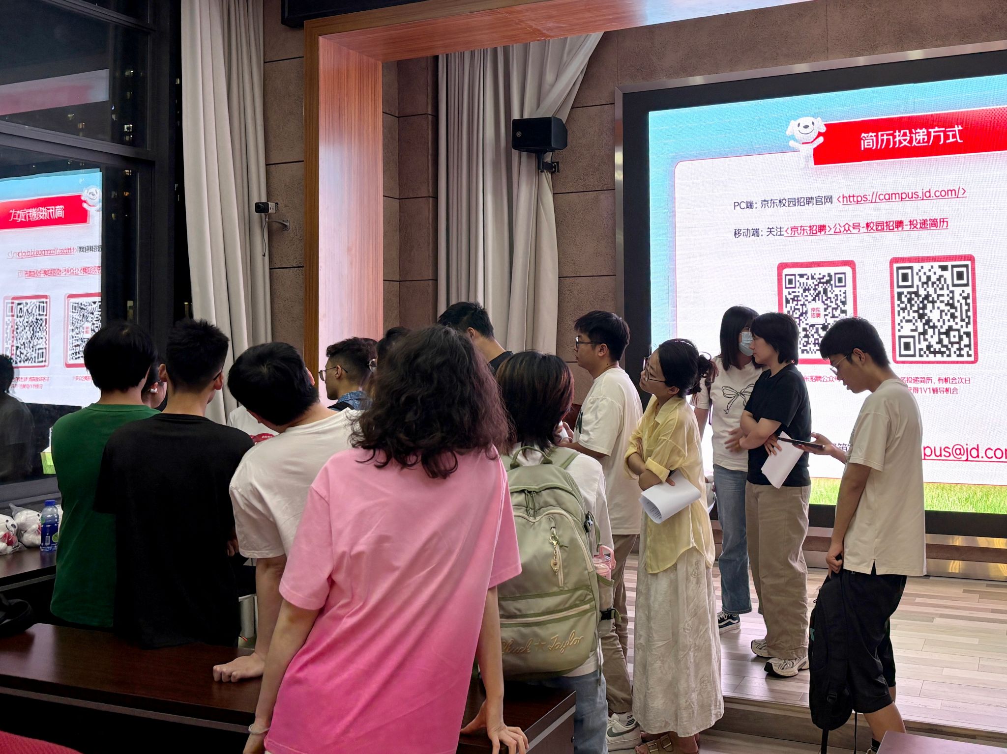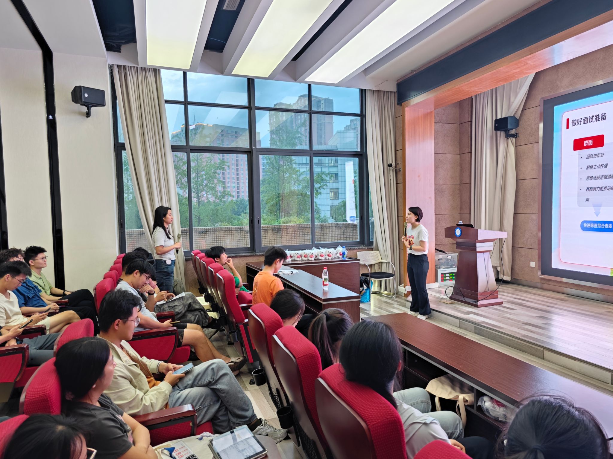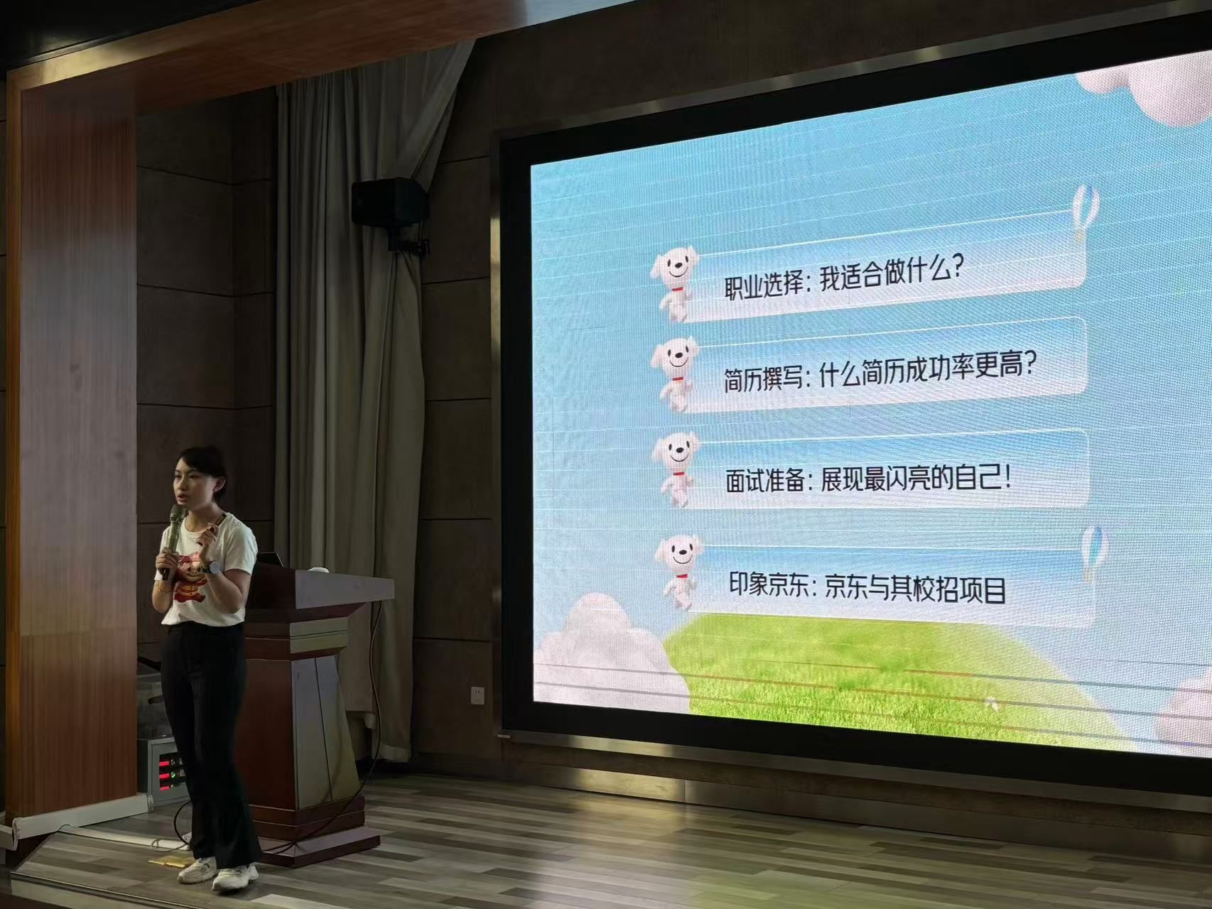 6月9日,为推进2026届员工就业指导工作,新葡的京集团35222vip、阳光生涯工作室开展“阳光生涯‘职’面未来”系列活动,邀请京东集团招聘高级经理、JD YOUNG实习生招聘项目经理陈鹏为同学们带来《Offer加速器:校招求职核心技能速通》就业指导讲座。