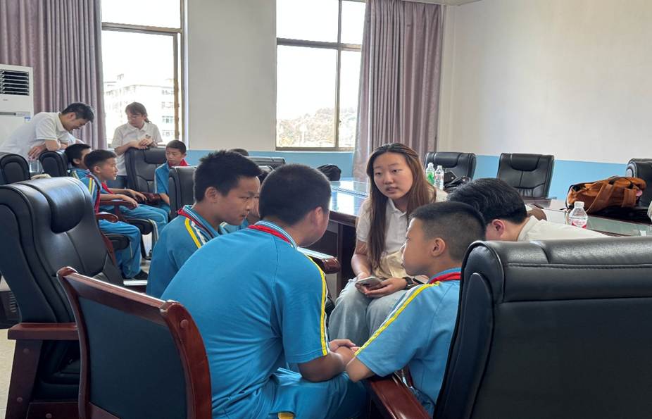 实践队先后前往天马镇白岩坪小学、岑巩县第四小学及岑巩县第四中学,以访谈交流为主要形式开展调研,并深入课堂一线,细致询问员工的学习目标与实际需求,了解当地教育发展现状及留守儿童的生活境况。