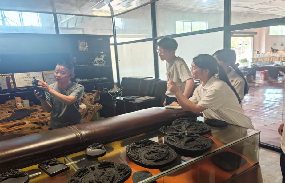 在思州石砚生产基地,思州石砚传承人周师傅向队员们详尽介绍了石砚的发展历程、传统制作技艺及文化内涵。队员们亲身参与了石砚的雕刻、打磨等环节,切实体会到传统手工艺所蕴含的独特魅力,以及传承过程中面临的诸多挑战。