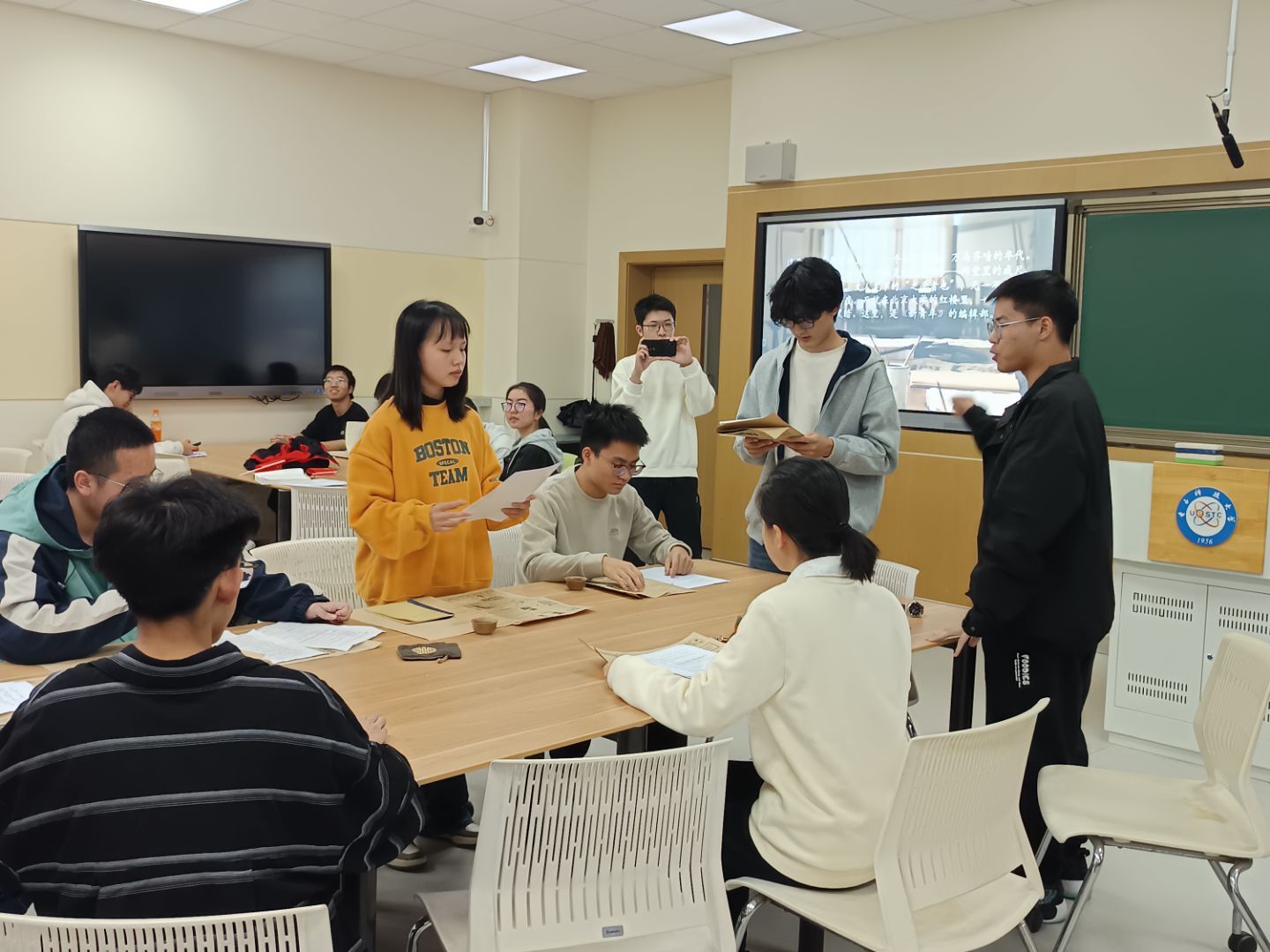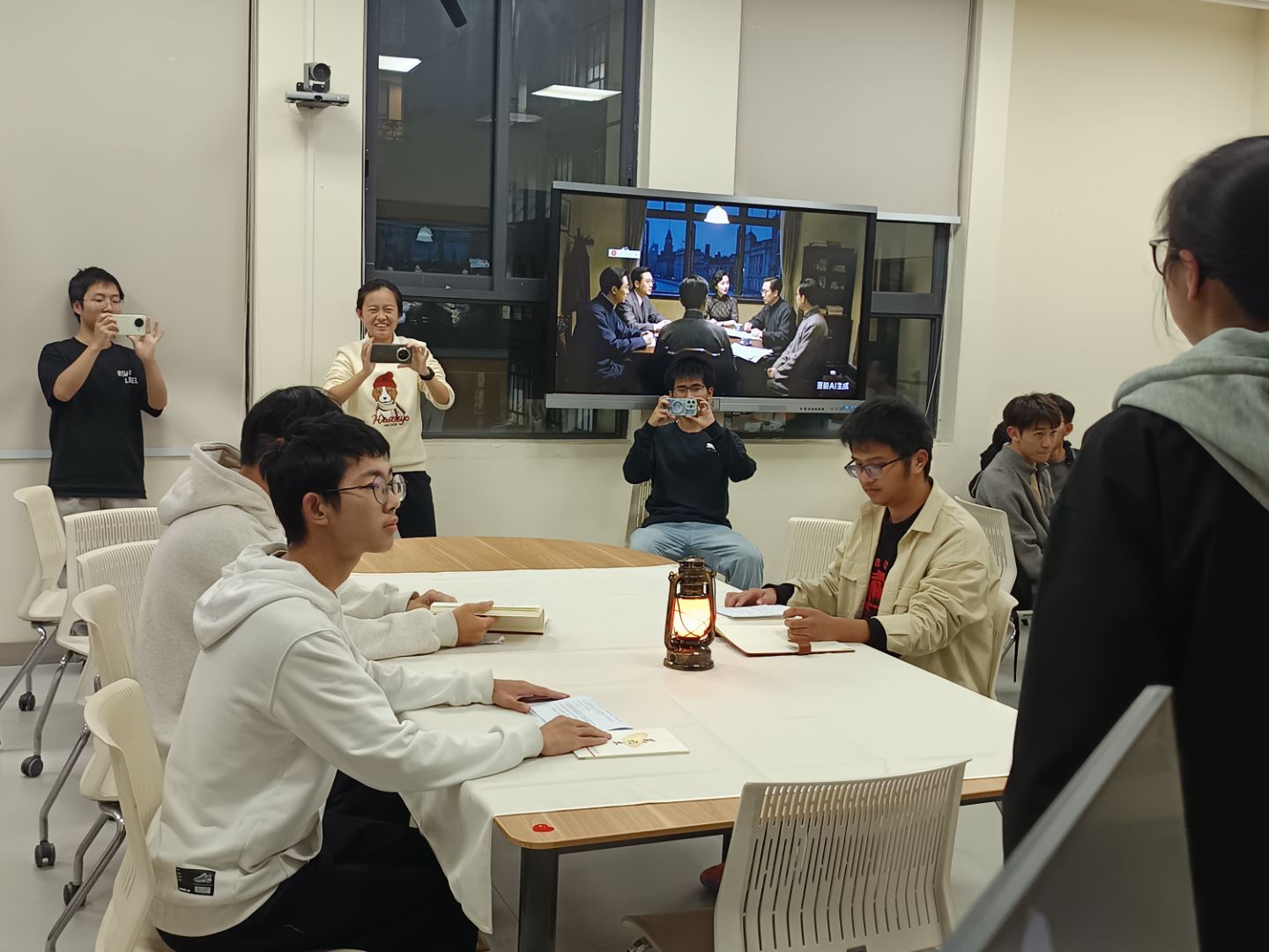 《觉醒年代》片段精准还原了北大《新青年》编辑部内的思想碰撞。同学们通过富有张力的表演,生动塑造了陈独秀的激昂、李大钊的坚定、鲁迅的锐利、胡适的理性与蔡元培的包容,展现了百年前先进知识分子在迷雾中探索救国道路的勇气与担当。
