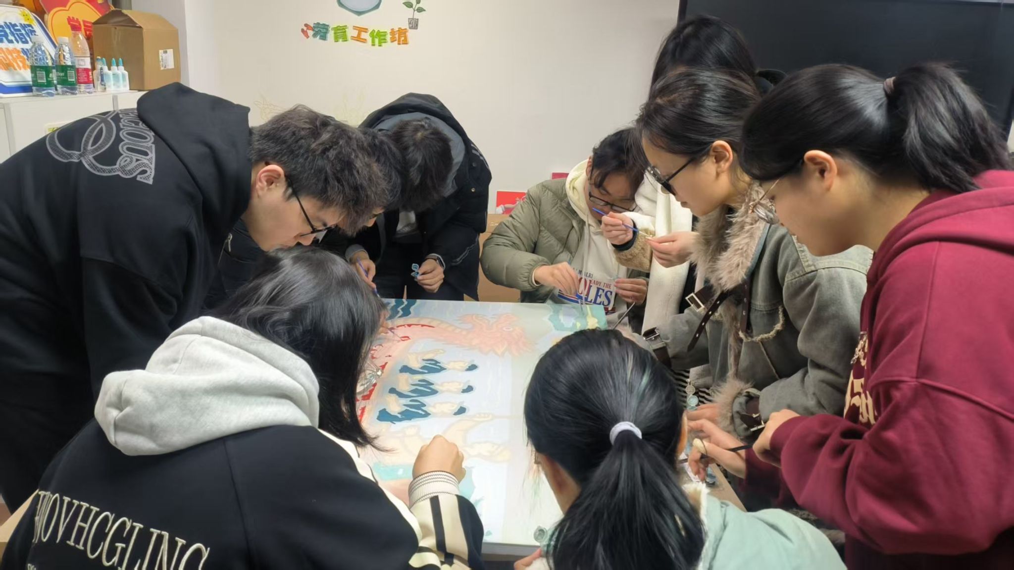 经过两个多小时的绘制,3幅充满创意的油画作品诞生。同学们携手将作品置于“信雅艺韵展”展区,为宿舍文化长廊增添了鲜活的艺术气息。