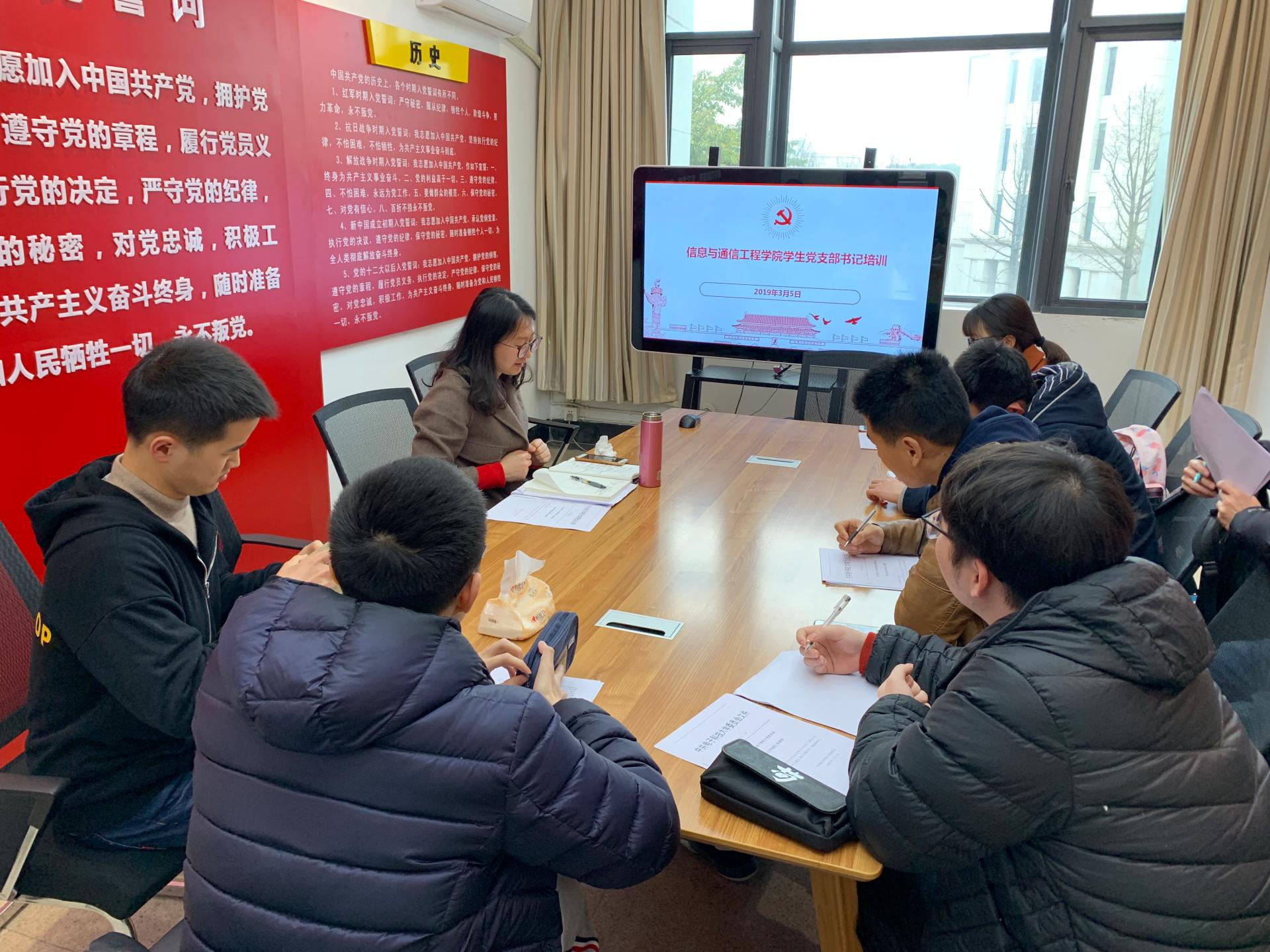 展示结束后,江倩给本科生支部书记开展了支部书记培训。通过学习《新葡的京集团35222vip委员会员工党支部工作细则》(党组[2019](2号)),明确作为员工党支部书记的责任和义务,以及工作开展要求。接下来,为更好开展党员接收、发展、转正工作,仔细学习了入党流程以及材料填写的规范。