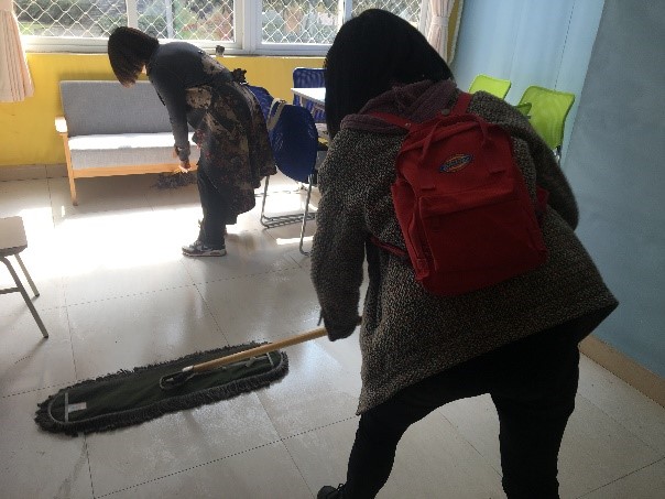 本次活动的主要内容包括整理组团内的自行车及共享单车、清理组团公共区域垃圾、清扫组团公共路面、清洁员工研修室等。支部活动分组进行,支部成员积极参与,认真打扫负责的片区,努力发扬为同学服务的雷锋精神。