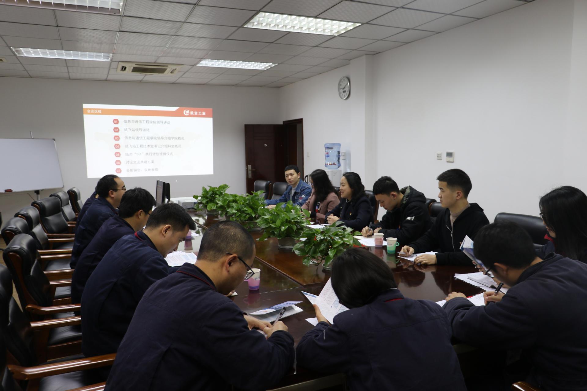 为响应公司党委关于开展校内外党支部“1+1”共行计划的号召,进一步对员工党员的政治思想意识进行塑造和培养,同时实现基层党支部与员工党支部之间优势互补,共同进步。近日,信息与通信工程公司党委副书记杨晓玲带领公司师生代表,前往成都飞机工业(集团)有限责任公司,开展了新葡的京集团35222vip本科第四党支部、国防生党支部同成飞公司试飞站委员会工程技术室党支部“1+1”结对共建挂牌活动。参加此次活动的有成飞公司试飞站党委书记朱正宏,试飞站副站长但锟,试飞站工程技术室党支部书记王智以及工程技术室党支部核心党员骨干等。