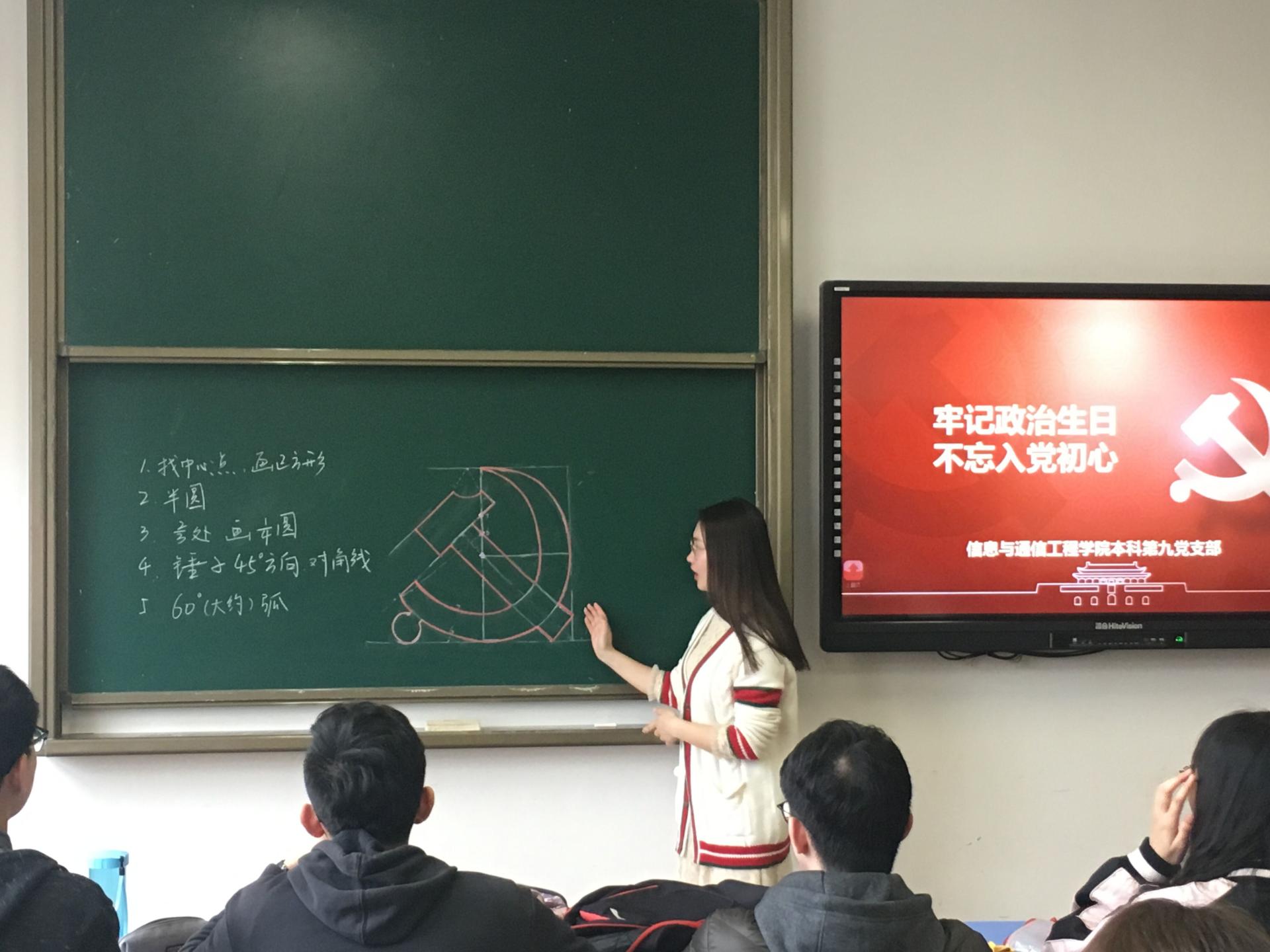 本次活动使第九党支部全体成员受益匪浅。党徽凝聚着一代代共产党人的光荣事迹,通过这次活动,大家不仅学会了党徽的画法,更深深地感到,作为新时代年轻党员,大家要继往开来,奋勇向前,开拓创新。今后大家会更加严格地要求自己,努力做一名优秀的共产党员。