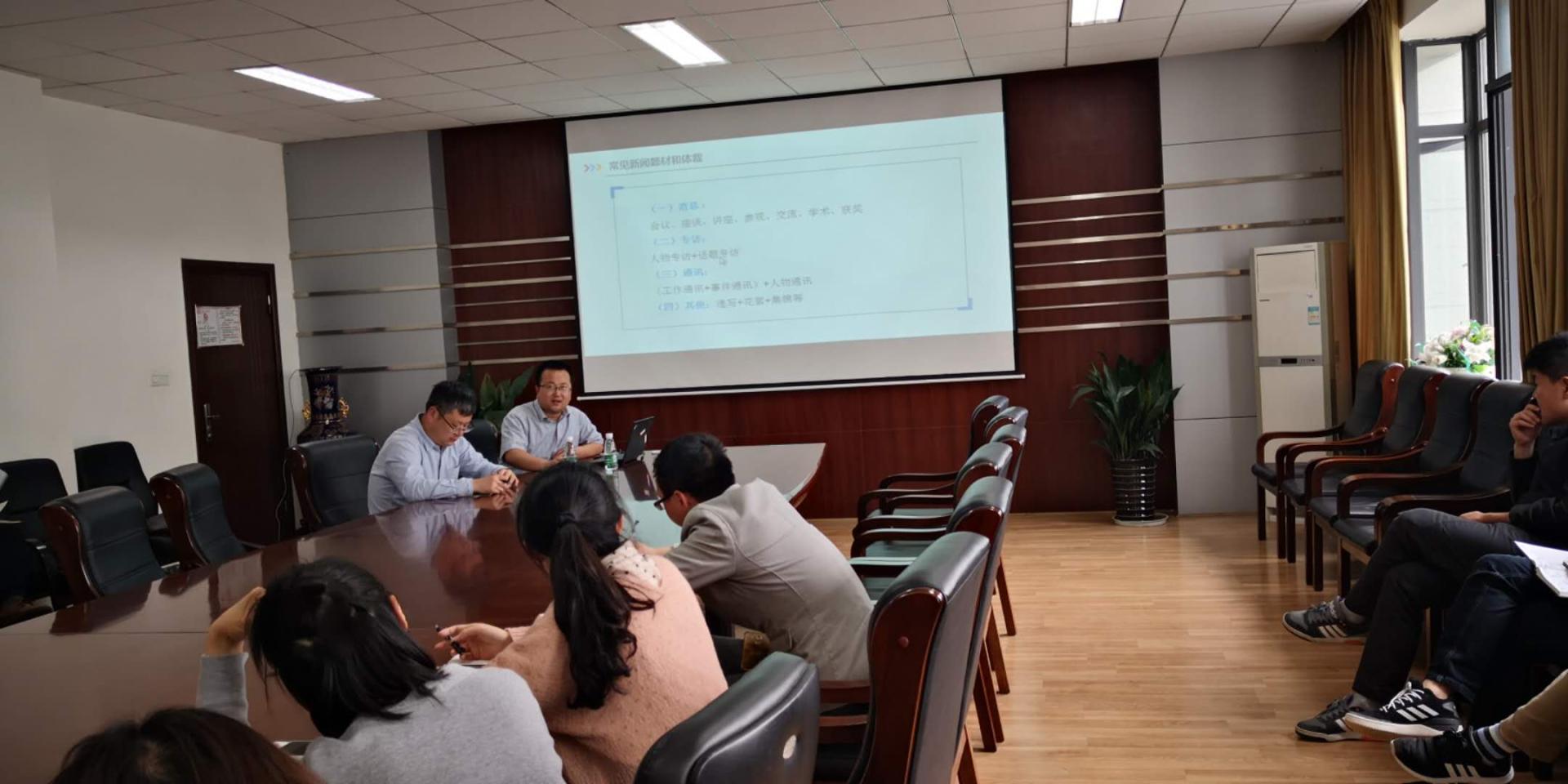 5月9日下午,新葡的京集团35222vip邀请公司宣传部王晓刚老师在清水河校区作新闻宣传稿撰写培训会,公司机关全体老师参加了此次培训会。