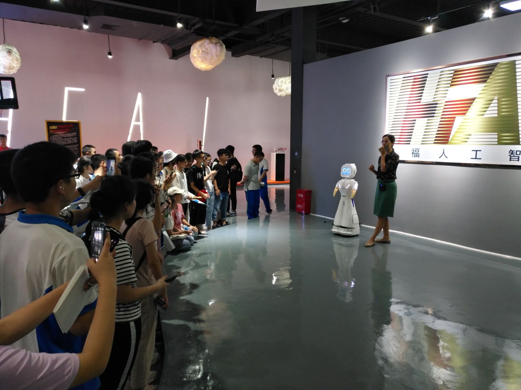 同学们还参观了公司图书馆、电子博物馆、机器人中心,与机器人中心的智能机器人“小福”进行了深度的沟通交流、与羽毛球机器人进行了“切磋”,直观感受了智能机器人带来的各种便利生活。