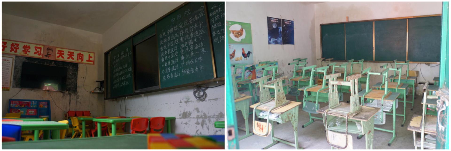 前些年,公司还只有杨老师一人教书,后来因管理两个班级忙不过来,杨老师才拉来了她的丈夫马老师一起教书。两名老师都是初中文化水平。如果孩子们上完二年级想要继续上学,那么他们就必须到山下的中心小学去上学。因为距离这儿太过遥远,家庭状况稍好点孩子们会由家长接送着去继续上学,更多的孩子们选择了中断学业。