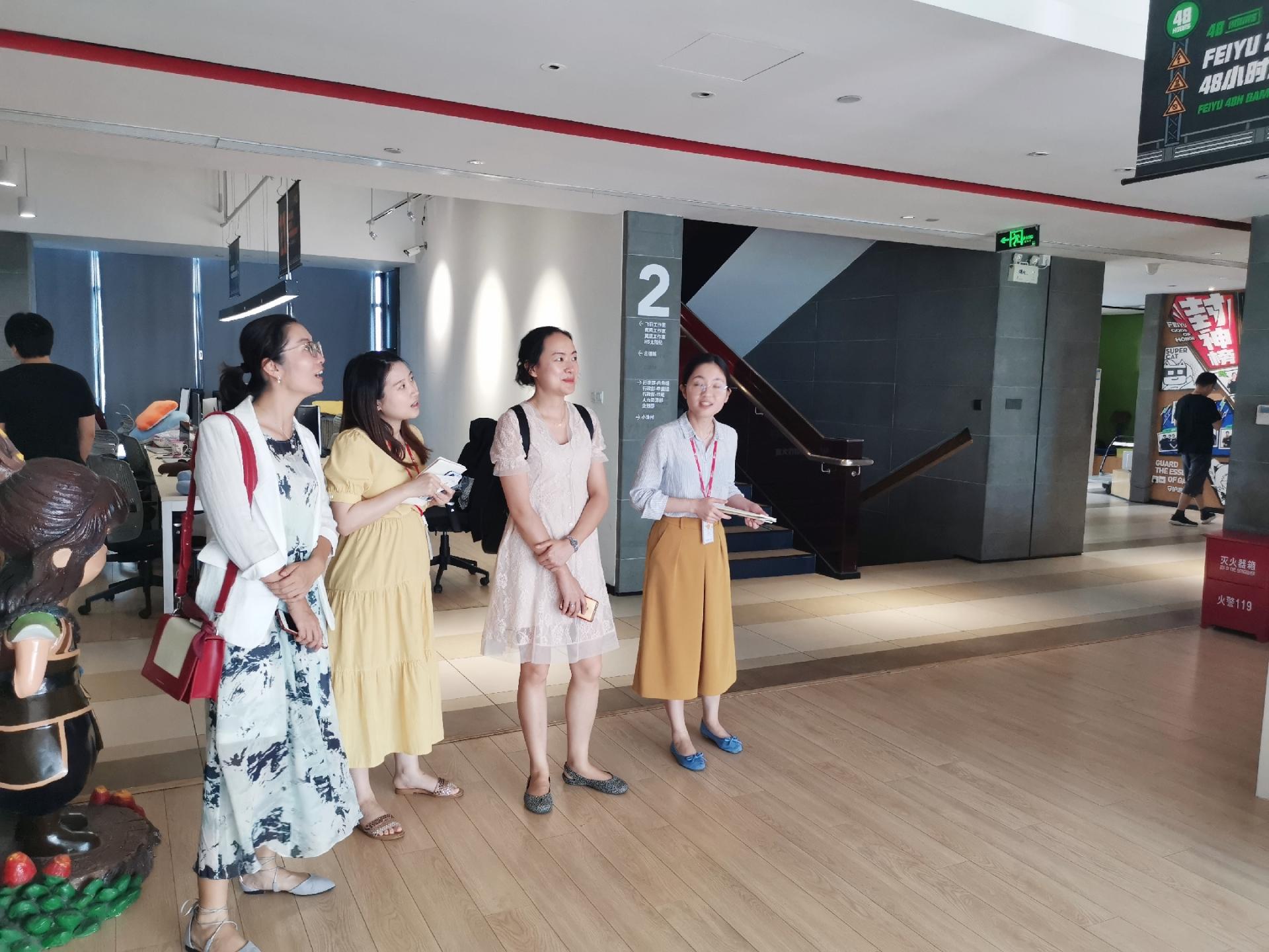 在飞鱼公司,工作人员介绍了公司旗下的主要游戏产品,向老师们讲解了近年来在公司的招聘情况以及2020年公司的初步招聘需求。杨晓玲向公司介绍了公司为更好满足毕业生就业需求,在校园招聘、校企合作等方面所作的调整和努力,希望公司增加实习和招聘规模,为毕业生提供更多高质量的就业岗位。