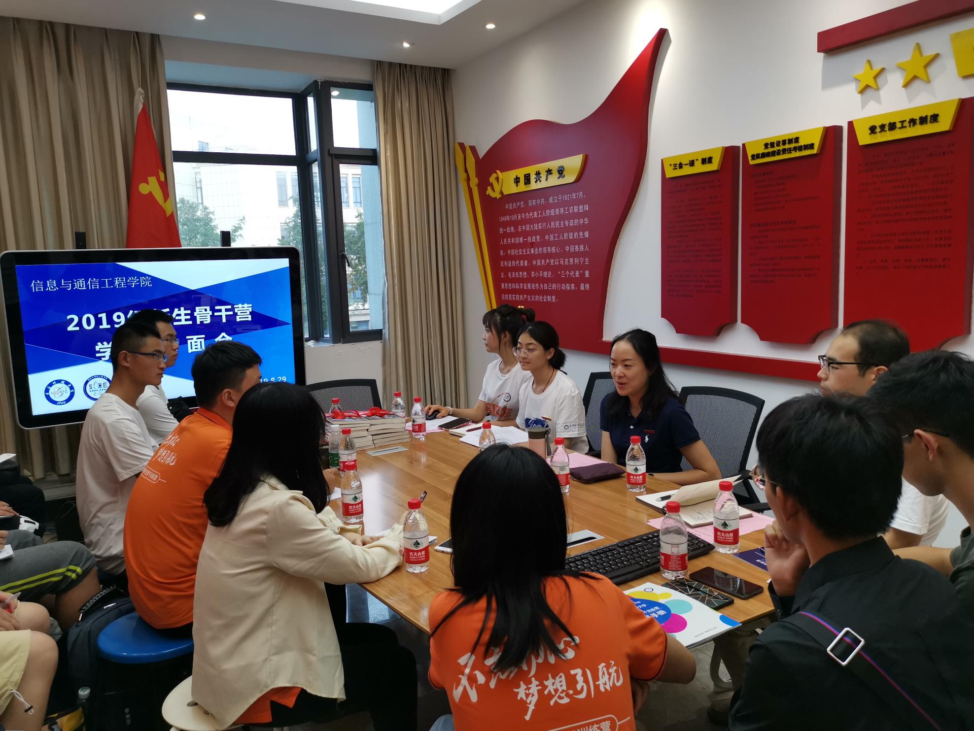 8月29日,公司在科研楼B区党建活动室召开2019级新生骨干见面会暨师生理论学习“每月一课”,党委副书记杨晓玲老师同15位参加公司新生骨干训练营的同学们进行了亲切交流。