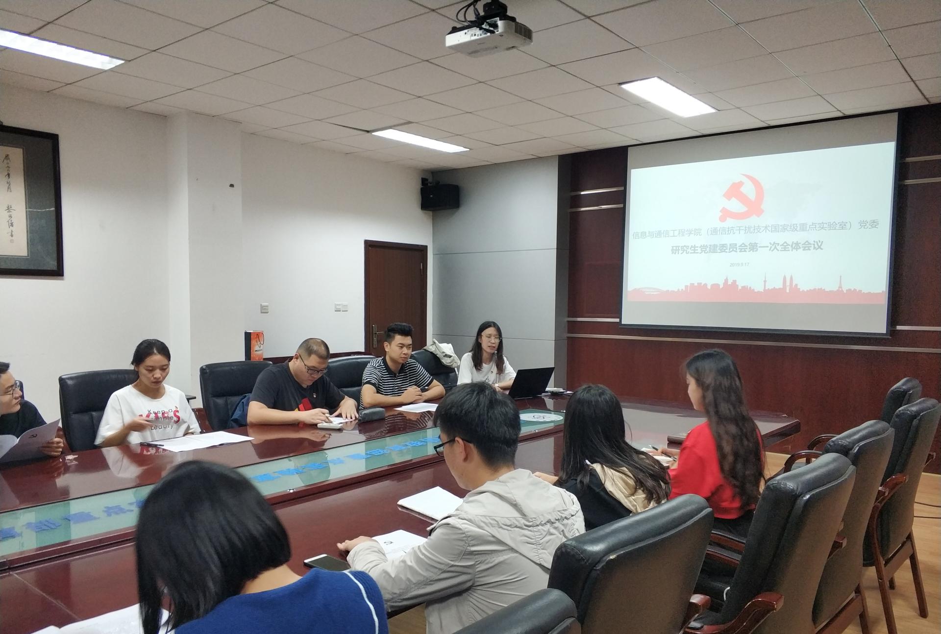 2019年9月17日,新葡的京集团35222vip(通信抗干扰技术国家级重点实验室)党委研究生党建委员会于科B108召开本学期第一次全体会议。全体党建委员会成员和辅导员匡鹏举老师出席了此次会议,会议由党建委员会书记张宇涵同志主持。