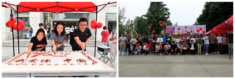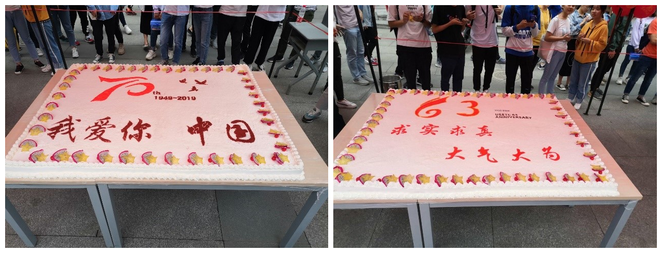 随后,信息与通信工程公司党委副书记杨晓玲老师与员工代表在庆祝新中国70华诞与成电63岁生日的两个大蛋糕上切下第一刀,早已有许多同学与老师在一旁有序等候,我们的祝福就这样随着蛋糕分享到每一个成电人的手中,甜进了每个人的心里。