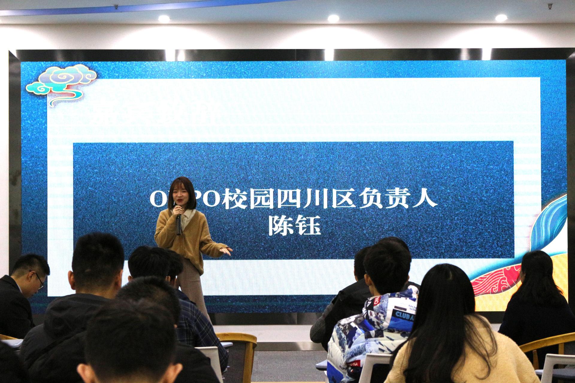 陈钰在致辞中说到,成电学子给大家的印象,总是理工男和技术宅,希望同学们不要隐藏心中的热爱,要勇于追求,OPPO助力为同学们圆梦。