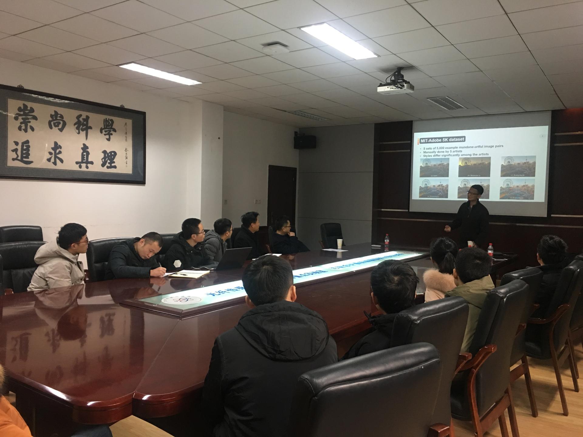 武筱林教授首先介绍了图像艺术化重建的相关背景知识及在手机照片质量提升等场景的应用。使用传统方法人工进行图像艺术化重建需要较强的专业背景并且极其费时费力,普通用户难以使用。先前的图像艺术化重建工作,往往直接运用深度学习,使用有监督学习的方法,未考虑图像的先验与结构等信息。通过分析MIT-Adobe 5K dataset艺术化图像的共性特点,如果针对亮度色度等空间进行改进,可以对深度学习的模型大大简化,同时保持较好的效果。武教授对他们的模型进行了详细的介绍,其复杂度大大降低,在手机等终端设备上有良好的应用前景。进一步地,考虑图像的主题与显著度,该工作可以更好地优化。该简化的网络在视频上也有不错的效果。武教授的讲座对同学们很有启发,讲座结束后武教授对同学们的问题进行了详细解答。