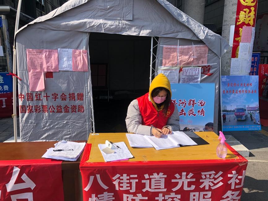 电子工程系研究生第五党支部 王莹莹:为了防止疫情的蔓延,我所在的安徽省宿州市三八街道光彩社区,采取了每户每两天只可出去一个人的防治措施,在每个小区设立义务值班点进行登记备案。为了做好防控工作,我主动响应号召,报名参加了街道社区办的义务值班宣传工作,主要在小区门口对进出人员登记检查,量体温,并喷洒消毒。