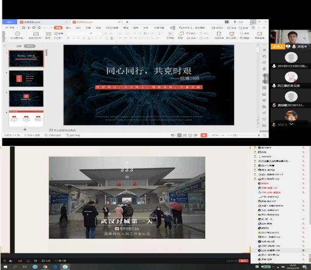 除了统一规划的环节外,每个班级也各具特色。有的班级班主任带领员工共同了解了新型冠状病毒肺炎防控知识,客观分析了疫情现状,表达了对医护工作者的崇高敬意,坚定了打赢这场防疫攻坚战的信心与决心。同时,班主任作为专业课老师,还详细了解同学们线上学习的真实感受。之后,员工们通过班会前准备的小视频、做志愿者的感悟、以及温馨寄语等,助力武汉,助力中国。