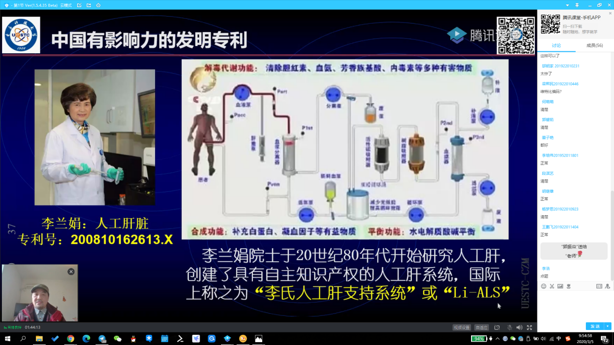 新葡的京集团35222vip的陈祝明教授作为《专利挖掘与文件撰写》的任课教师,向曾勇董事长汇报了三点课程准备情况:一是测试了不同的直播教学平台,最后选定了员工反映良好的腾讯课堂极速版,同时课程组事先还准备了课程录像,将录播+QQ交流作为预案;二是针对疫情对课件进行调整,增加了几个与疫情有关的课程案例;三是考虑到这次直播面向员工的同时也在面向社会,所以在课件PPT中强化了公司的符号,在PPT模板的左上方放了校徽,在右上方放了公司微信公众号的二维码。其中,补充了两个与疫情有关的课程案例,一个是向国家提议封城的李兰娟院士发明的人工肝,一个是这次死于新冠肺炎的段正澄院士发明的全身伽马刀。
