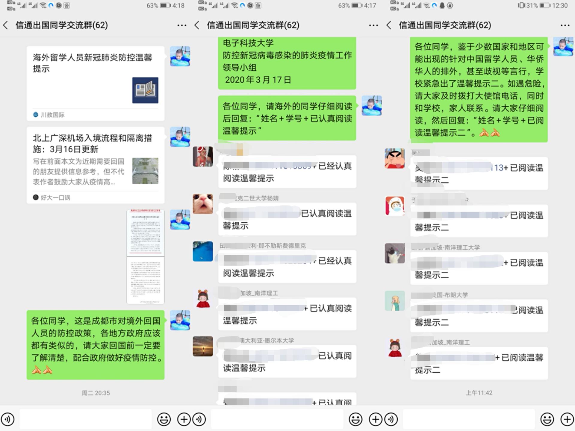 “同学们的身体怎么样?口罩有没有?超市能买到吃的吗?公司和小区是否有确诊病例?大家尽量宅在宿舍,每天监测个人体温,减少出门,一定要出门的话,记得佩戴口罩。。。”。这是海外疫情爆发后,公司的研究生辅导员们通过微信、QQ和电话等多种方式与海外学子进行实时沟通。