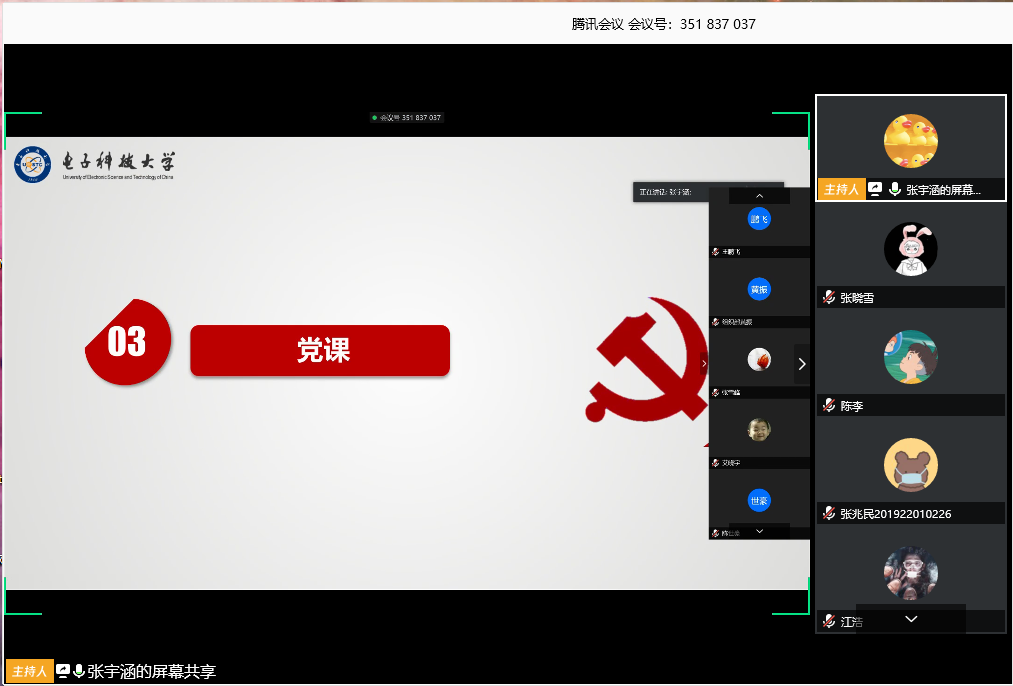 为进一步加强研究生基层党组织建设,提升研究生党建工作科学化、规范化水平,2020年4月10日,新葡的京集团35222vip(通信抗干扰技术国家级重点实验室)党委研究生党建委员会于线上召开本学期第一次全体会议。辅导员匡鹏举老师和党建委员会全体成员参加了此次会议。会议由党建委员会书记张宇涵同志主持。