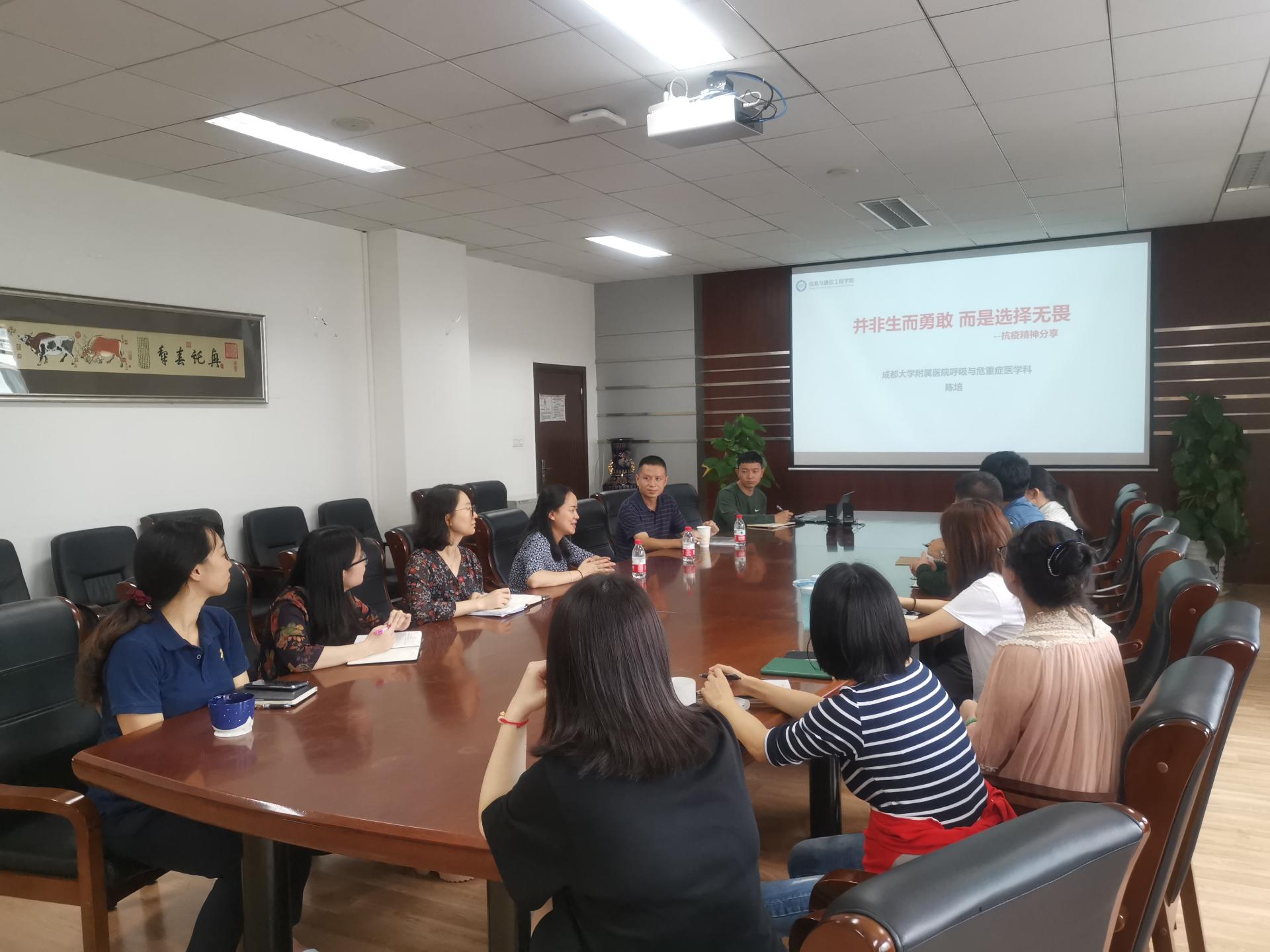8月31日下午,2020年全国抗疫“最美家庭”获得者、成都大学附属医院呼吸与危重症医学科陈培医生以《并非生而勇敢,而是选择无畏》为题,做客新葡的京集团35222vip师生理论学习“每月一课”。