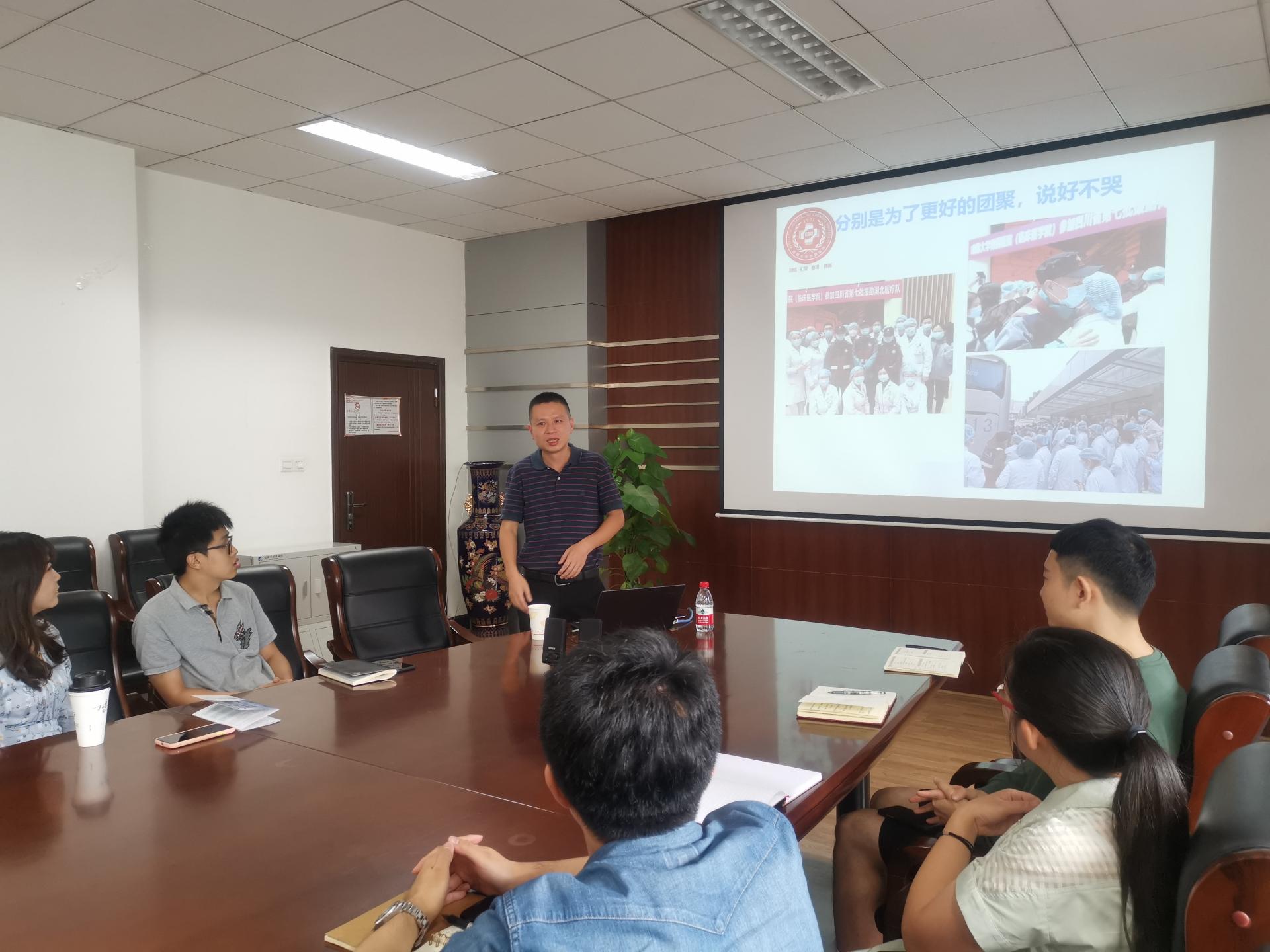 陈培医生结合抗疫期间生动感人的事例,讲述了疫情期间医者用实际行动践行誓言的责任与担当。“23岁的女志愿者”、“65岁退休的放射科医生申请回到一线”、“向医务人员下跪表示感谢的老奶奶”......每一个事例,都凝聚着抗疫医务工作者的大爱奉献和全国人民抗疫一心的众志成城。讲述过程中陈医生几度哽咽,也让辅导员真实感受到了抗疫背后的艰辛和不易,疫情得到有效控制的结果是无数人舍身忘我换来的。