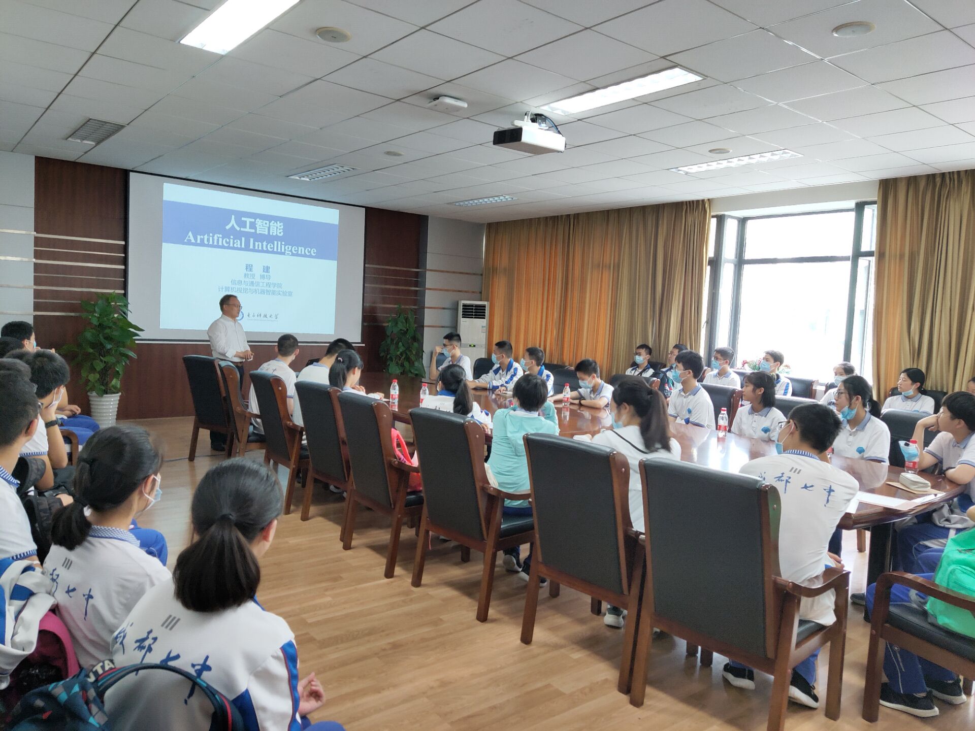下午15点00分,来访40名成都七中的老师和员工到信息与通信工作公司参观,公司招生工作组联络员李波老师简单给同学介绍了公司和公司的基本情况,随后公司信息工程党支部书记程建教授给同学们做题为《人工智能的前世今生》的科普讲座,程建教授向同学们详细介绍人工智能发展的历程,以及人工智能发展过程中的机遇与挑战,解读当今人工智能发展的进展,以及面临的困难,勉励同学们努力学习,将来投身人工智能领域研究,为国家多做贡献。