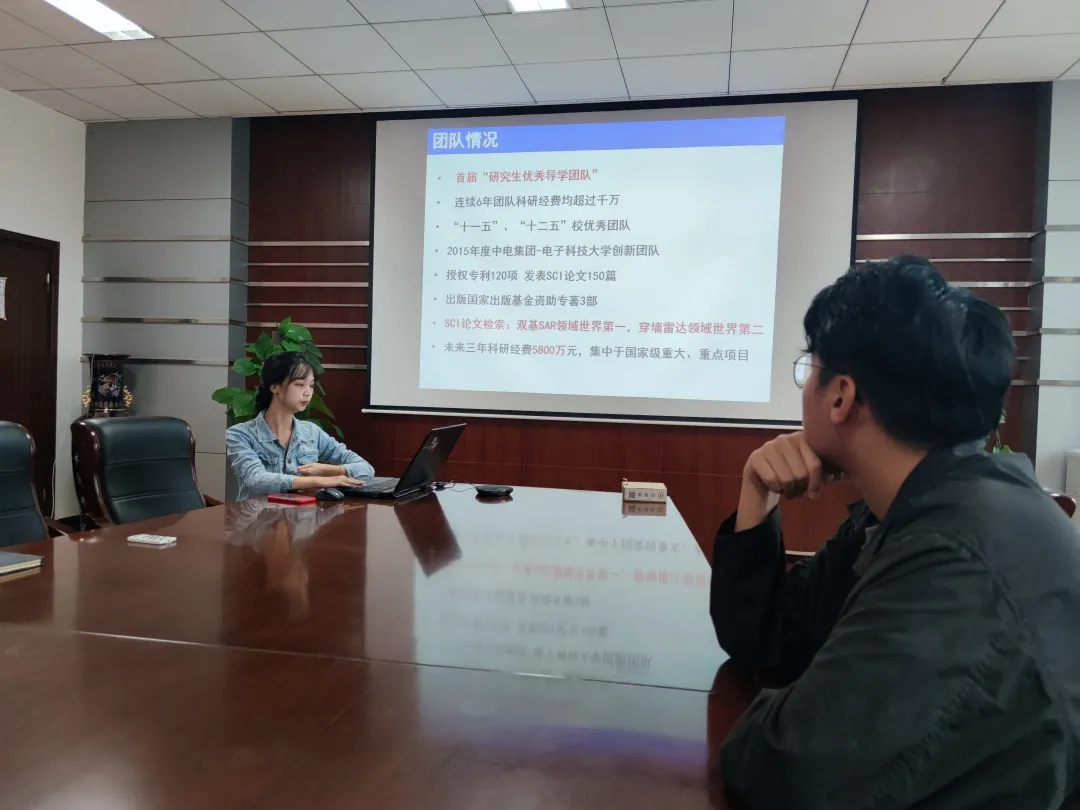 活动开始,王雯璟和程卓尔同志分别向前来参观的本科同学介绍了由杨建宇、孔令讲老师负责的雷达探测与成像团队的具体情况以及科研方向,并展示了团队的重要科研项目成果。活动最后,王雯璟和程卓尔同志耐心为同学们解答了报考团队以及专硕学硕差别等问题。