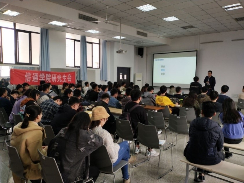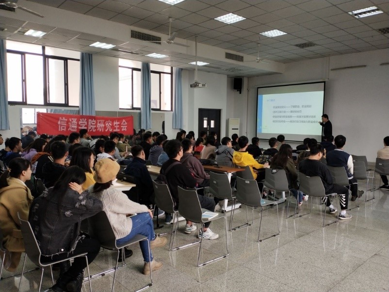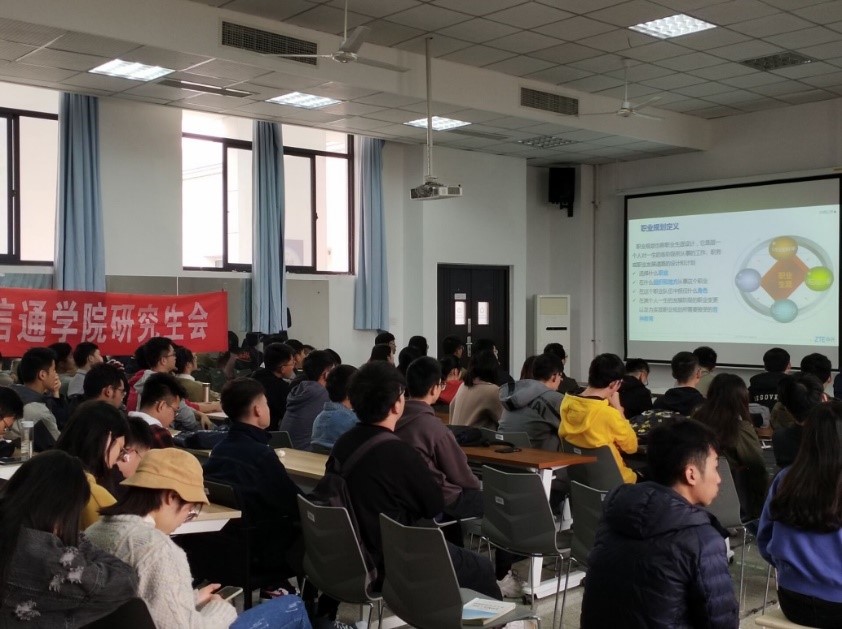 中兴通讯股份有限公司是全球领先的综合通信解决方案提供商,中国最大的通信设备上市公司。主要产品包括:2G/3G/4G/5G无线基站与核心网、IMS、固网接入与承载,光网络、芯片、高端路由器、智能交换机、政企网、大数据、云计算、数据中心、手机及家庭终端、智慧城市、ICT业务,以及航空、铁路与城市轨道交通信号传输设备。施先生首先带领在座研究生学习了职业规划的定义,让大家明白工作、职业、事业三者间的联系和各自内涵,并推荐了许多专业的测评工具,帮助大家更好地认识自己。