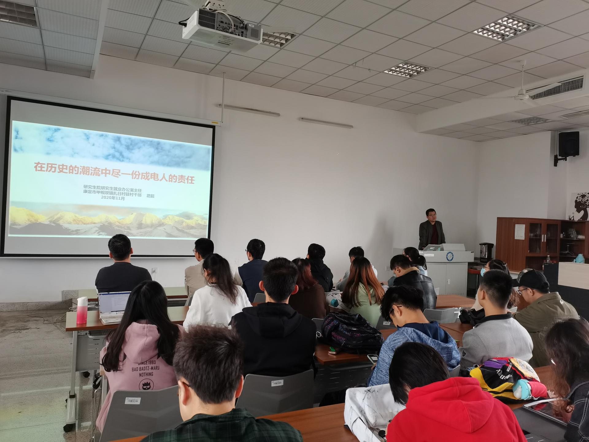 2020年11月10日,新葡的京集团35222vip(通信抗干扰技术国家级重点实验室)党委于立人楼A415开展本学期第二次党支部书记培训活动。由研究生院研究生就业办公室主任、康定市甲根坝镇扎日村驻村扶贫干部路超老师为支部书记们带来以“在历史的潮流中尽一份成电人的责任”为主题的脱贫攻坚工作分享。