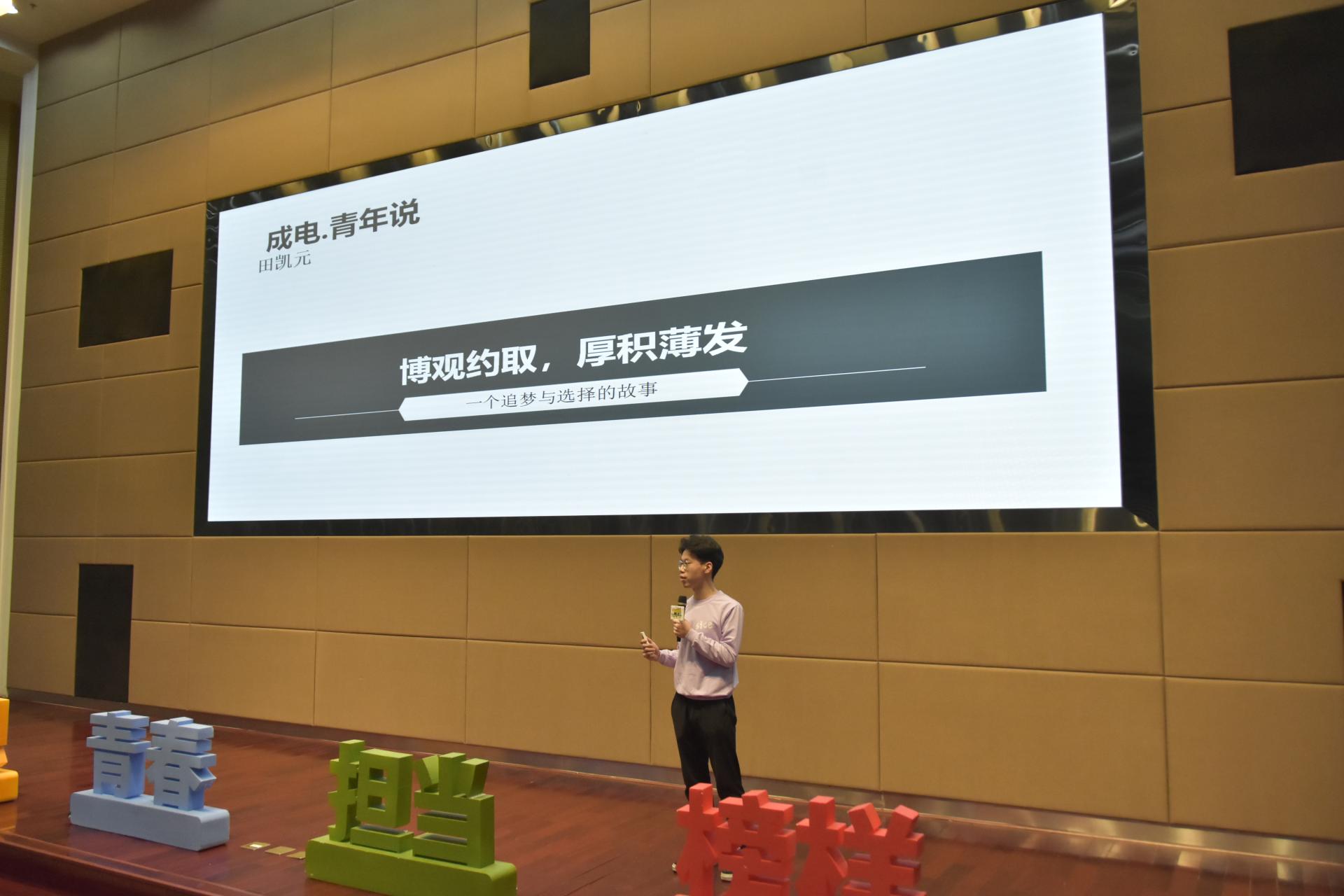 他斩获清北复交等八所名校offer,终入北大光通信国家重点实验室;手握国奖、唐奖,华格奖学金,立人奖学金等共计8万余元;他以第一作者在雷达顶会IEEE RadarConf 2020发表论文。田凯元首先向大家展示了他刻在寝室桌上几个字:“北京大学。“这就是他的梦想。他向大家讲述了梦想对他的激励和启迪,纵使大一时成绩不理想也不放弃对理想的追求。他鼓励大家要有自己的追求,有自己关于优秀的定义。追梦需要定目标,要有针对性和层次性这样相应的选择才不会后悔。优秀的定义很多,找到自己的定义作为总目标,分解后贯彻执行。他向我们展示了他如何一步一步接近自己的梦想,他查看了北京大学保研的要求,并将其分为一个个目标脚踏实地地执行,最终完成了所有的要求,取得了入校资格。田凯元说:“博观约取就是大一期间广泛参与理性选择找到总目标。厚积就是大二阶段对分解的目标执行。薄发就是大三阶段收获总结。“他向我们完整展示了一个老员工如何度过大学,不负青春,不负梦想。
