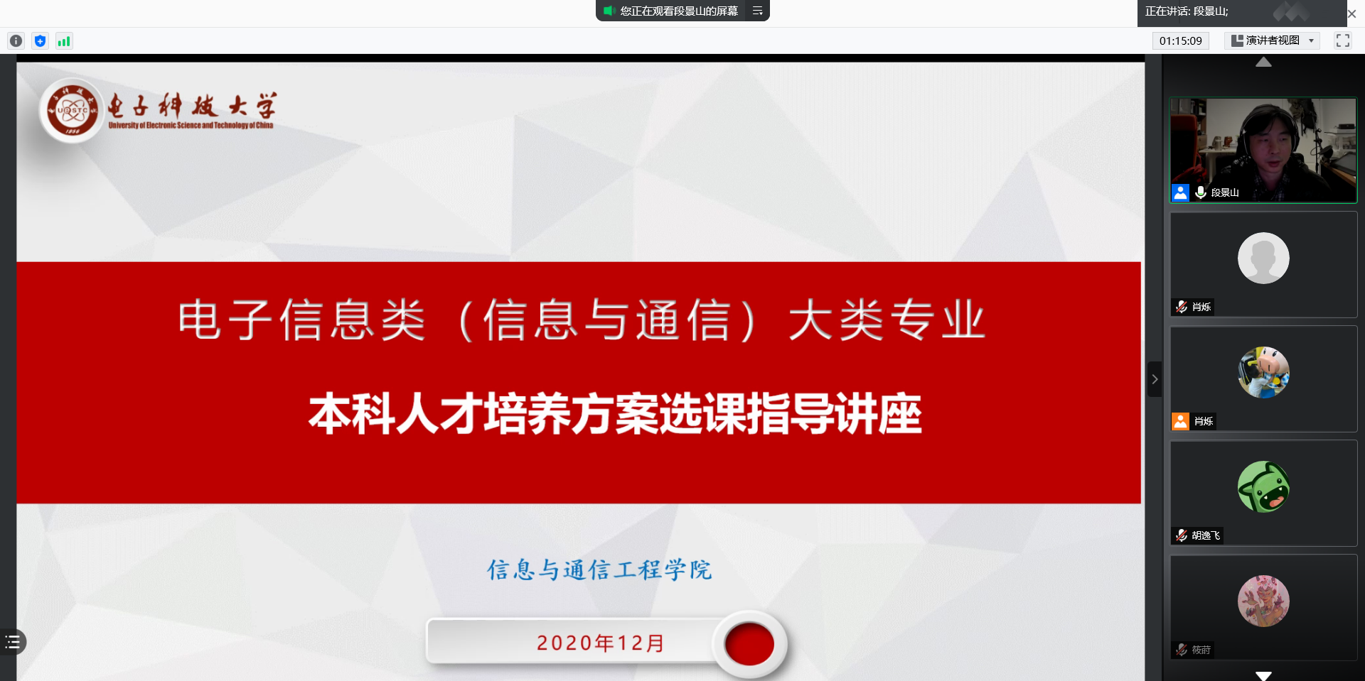 首席教授段景山老师详细解读电子信息类大类专业本科人才培养方案,介绍各个本科专业的课程体系结构和建设思路,并为同学们提供了多套供参考的选课方案。
