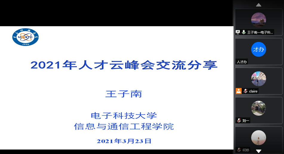 本次人才云峰会还邀请到青年拔尖人才王子南教授,他分享了自己加入成电前的思考和一路走来的经历与感受,诚恳生动的讲述了他并不一帆风顺的科研之路和在公司领导、团队老师帮助下成长成才的故事,也让学者们深切感受到他在成都安居乐业的生活状态。