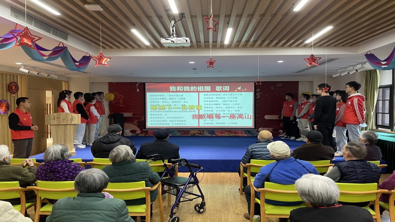 在老党员魏一民爷爷同志发言完毕后,支部全体党员志愿者也感触颇深,不仅是对共产党诞生之艰难的感慨更是对如今我们拥有的美好生活的感慨。怀着感恩之心,全体党员志愿者在书记程卓尔同志的带领下一起为合熹院的所有老党员同志献唱歌曲《我和我的祖国》以表达我们新一代的党员同志对老党员同志的尊敬以及对祖国的美好祝福。