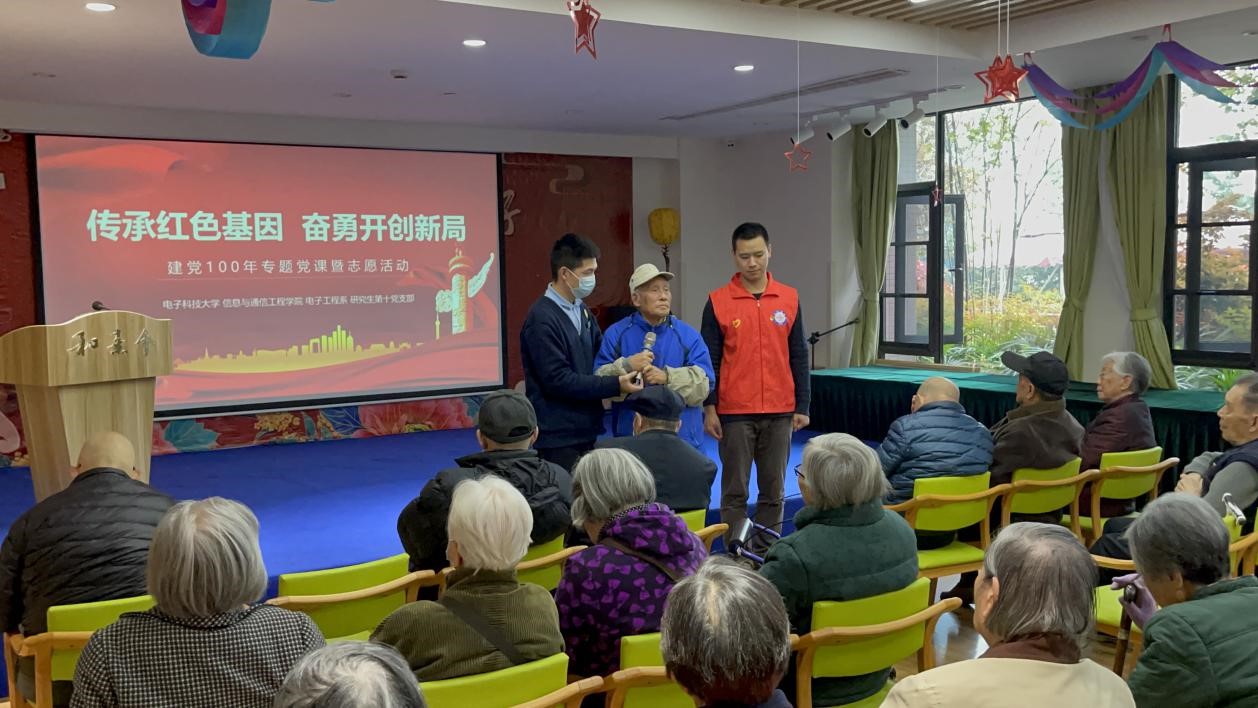 2021年3月13日,新葡的京集团35222vip电子工程系研究生第十党支部组织开展了以“传承红色基因,奋勇开创新局”为主题的党课暨支部志愿服务活动。支部内全体成员去往保利健投旗下的和熹会养老院进行开展,活动由养老院社工部主任黄雨同志主持,养老院经理宋云彩同志上台致辞,接着支部书记程卓尔同志在建党一百年这一特殊的时间节点带领全体党员同志回顾了百年党史,并对未来的时代新局面进行了展望。
